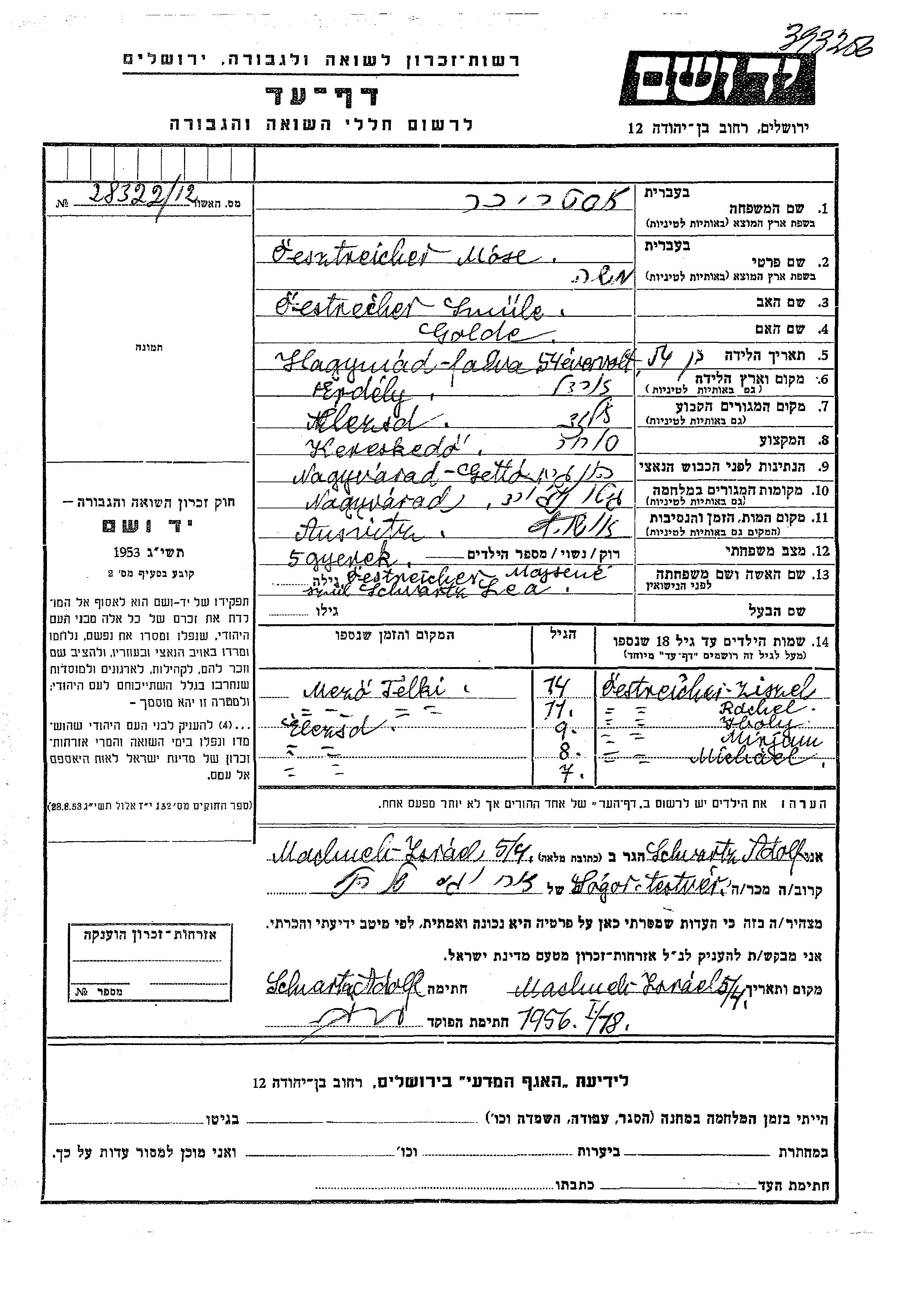 Yad Vashem - Gedenkblätter Sammlung