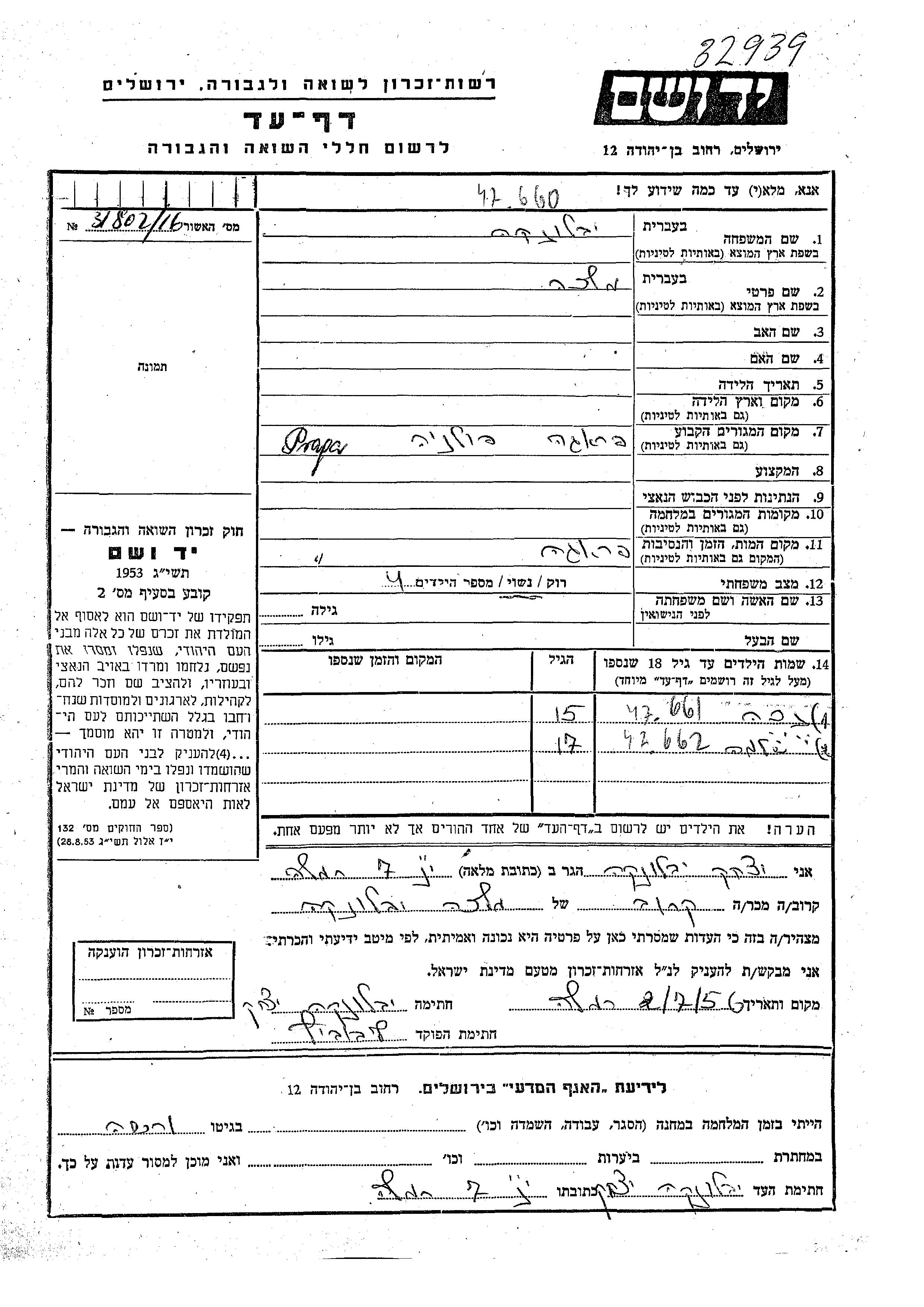 Iablonka Shlomo Praga, Polen Gedenkblatt