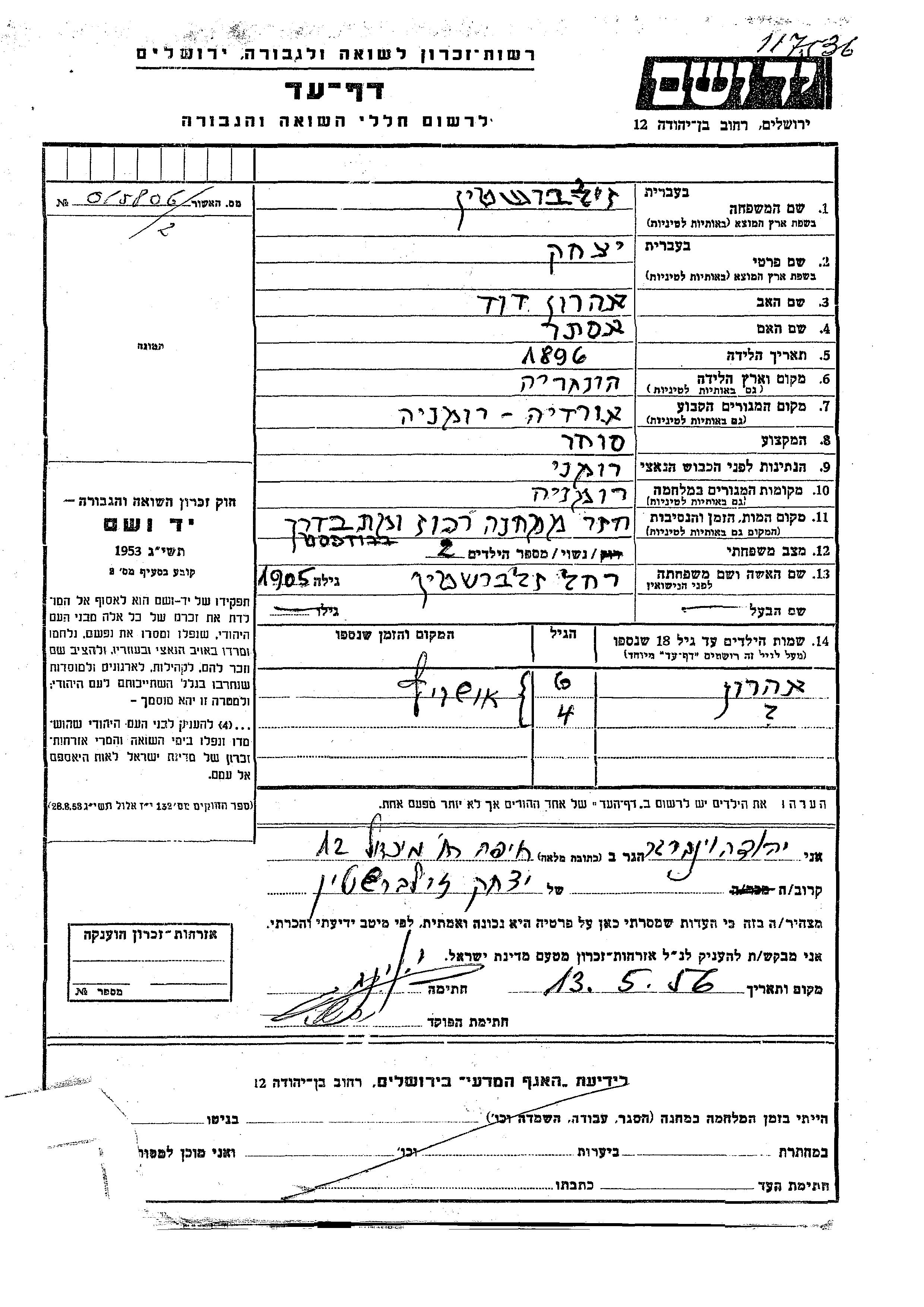 Vorname unbekannt Zilbershtein wurde Er/sie war der/ die Sohn/Tochter von Yitzkhak und Rakhel. Er/Sie war Kind. Vor dem Zweiten Weltkrieg er/sie in Oradea, Rumänien. Während des Krieges war er/sie in Rumänien.