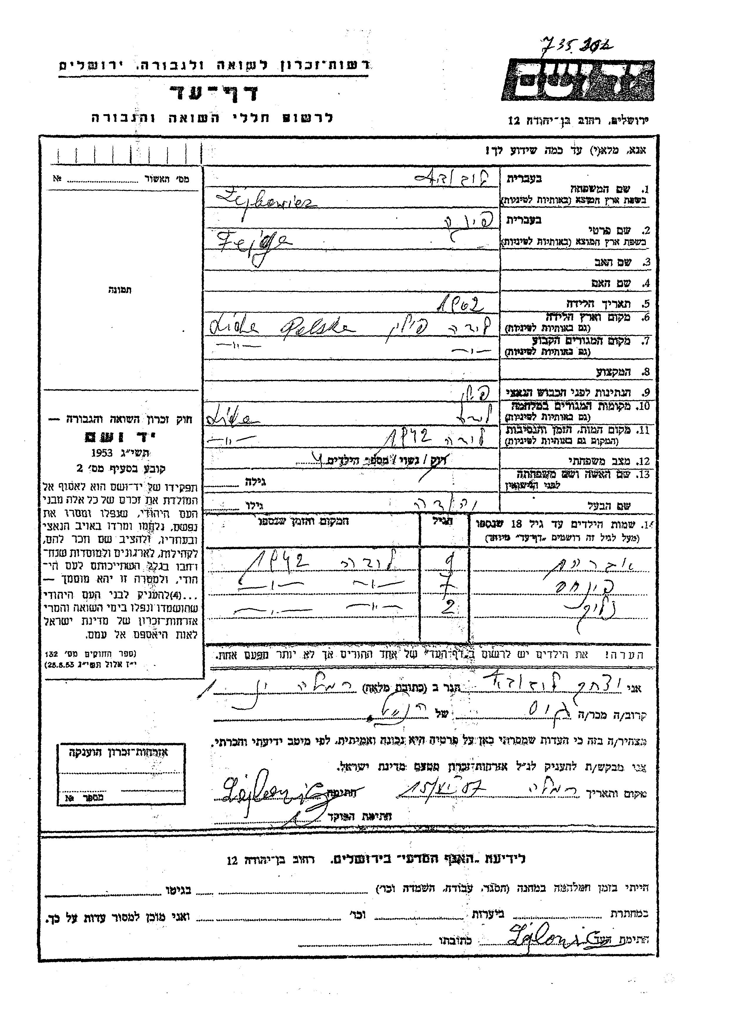 Zelig Lejbowicz wurde Er war der Sohn von Yehuda und Fejga. Er war Kind. Vor dem Zweiten Weltkrieg lebte er in Lida, Polen. Während des Krieges war er in Lida, Polen.
