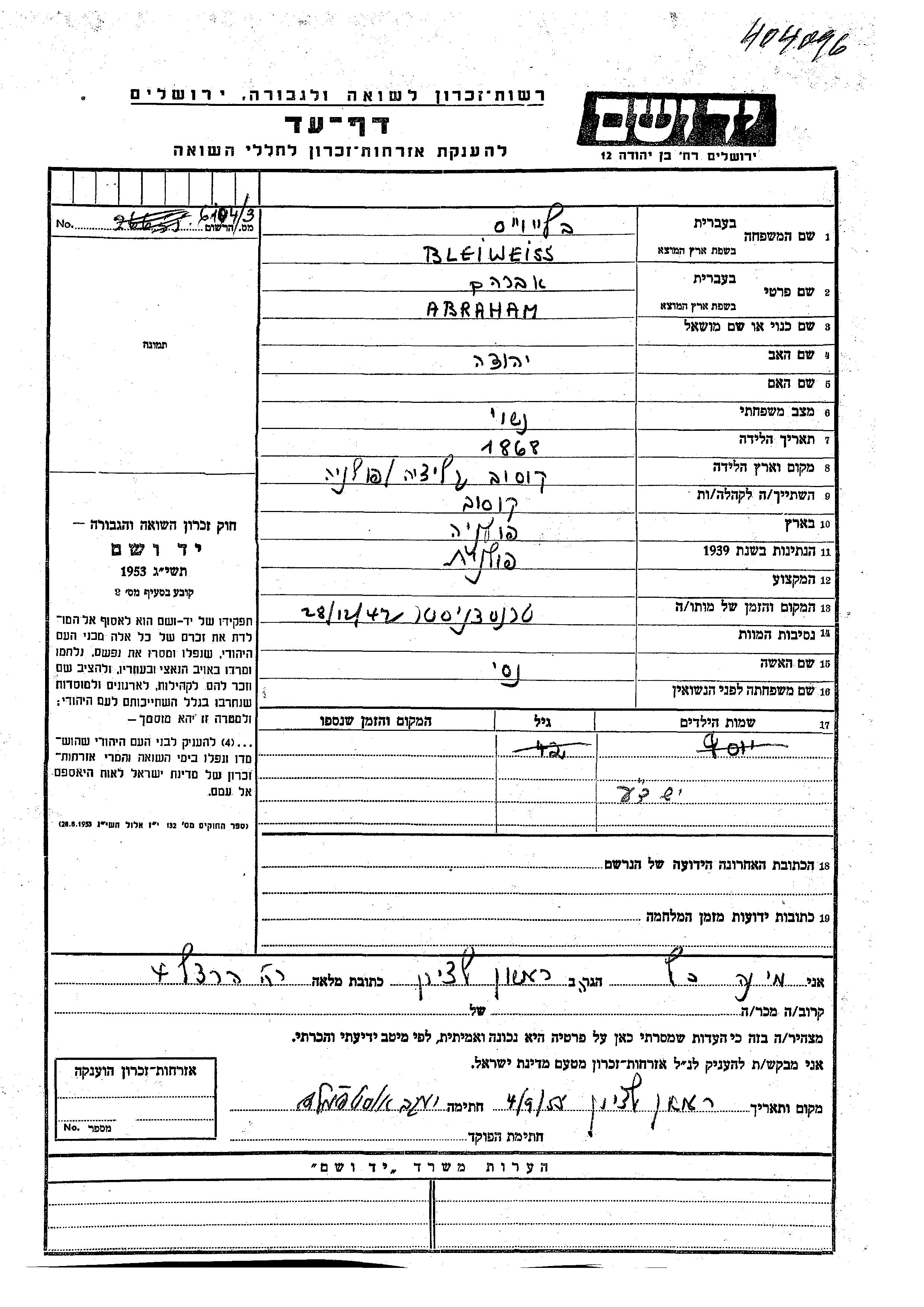 Suche nach einem Todesjahr im Zeitraum der Holocaust: 1933 bis 1945. Bitte wählen Sie 'Exakt' im Auswahlmenü, um nur nach einem einzelnen Jahr zu suchen, alternativ können Sie die flexibleren Optionen '+/- 2 Jahre' oder '+/- 5 Jahre' wählen.