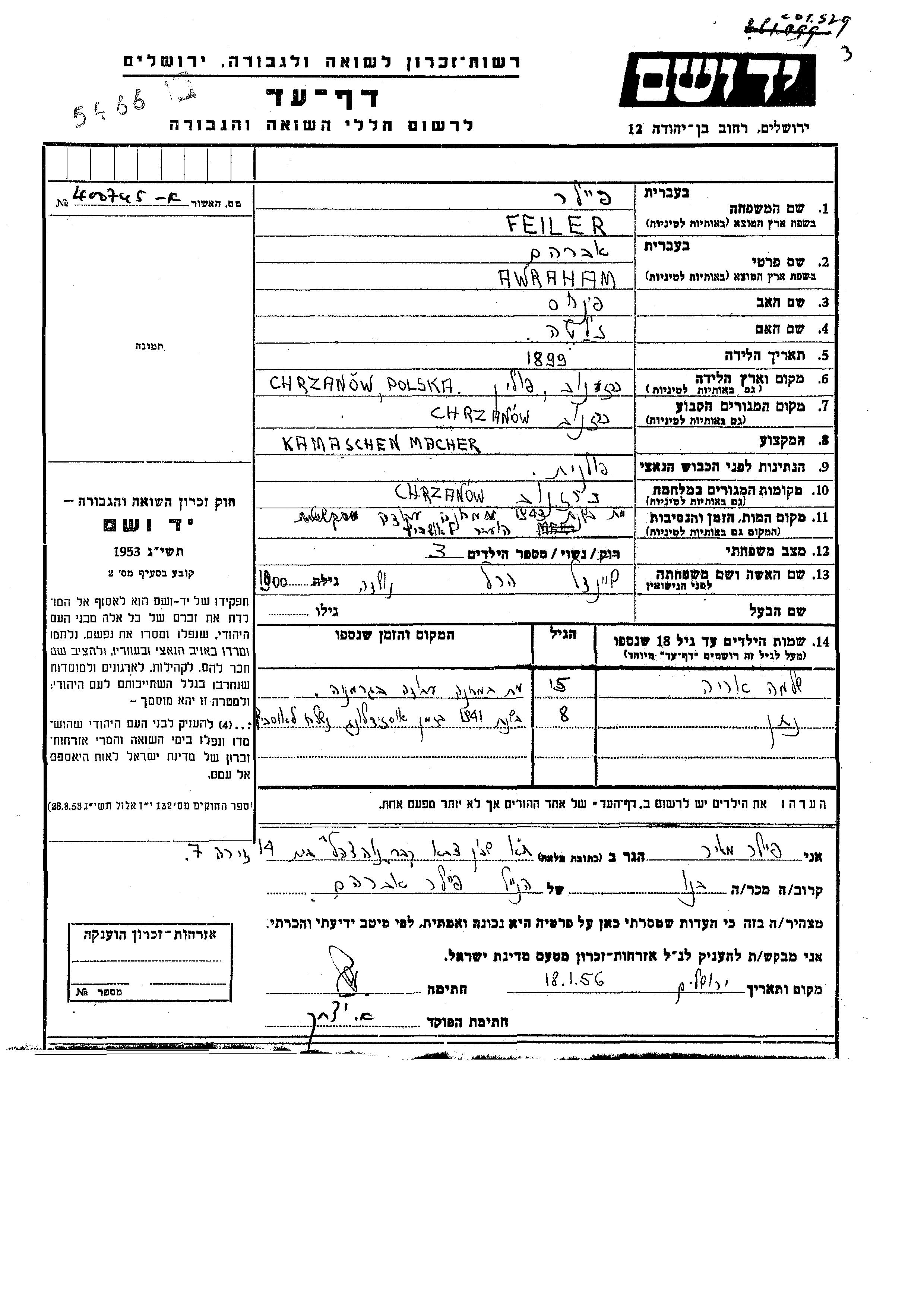 Natan Feiler wurde Er war der Sohn von Awraham und Sheindl, geb. Herl. Er war Kind. Vor dem Zweiten Weltkrieg lebte er in Chrzanow, Polen. Während des Krieges war er in Chrzanow, Polen.