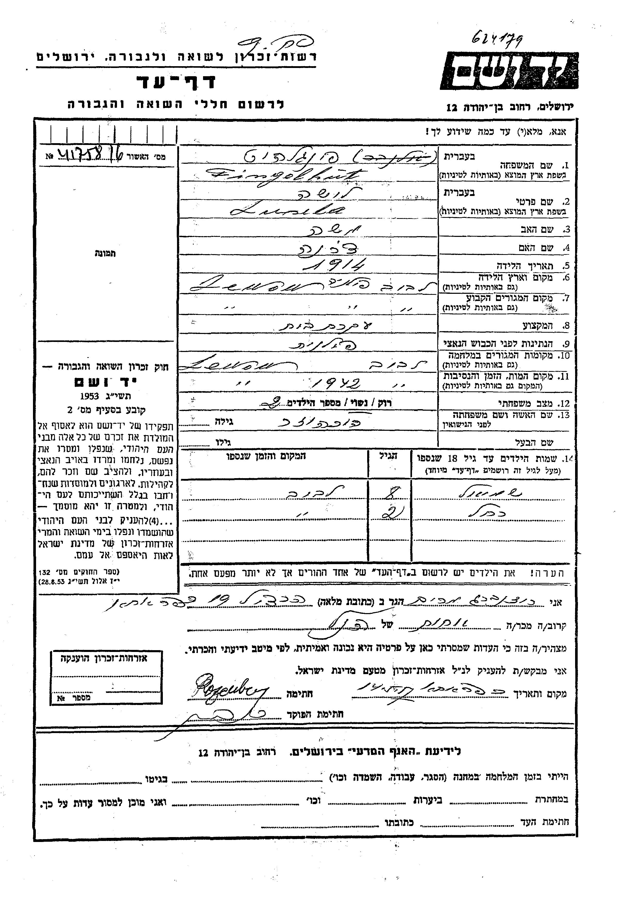 Shmuel Fingelhut wurde Er war der Sohn von Luscha, geb. Hokhhauzer. Er war Kind. Vor dem Zweiten Weltkrieg lebte er in Lwow, Polen. Während des Krieges war er in Lwow, Polen.