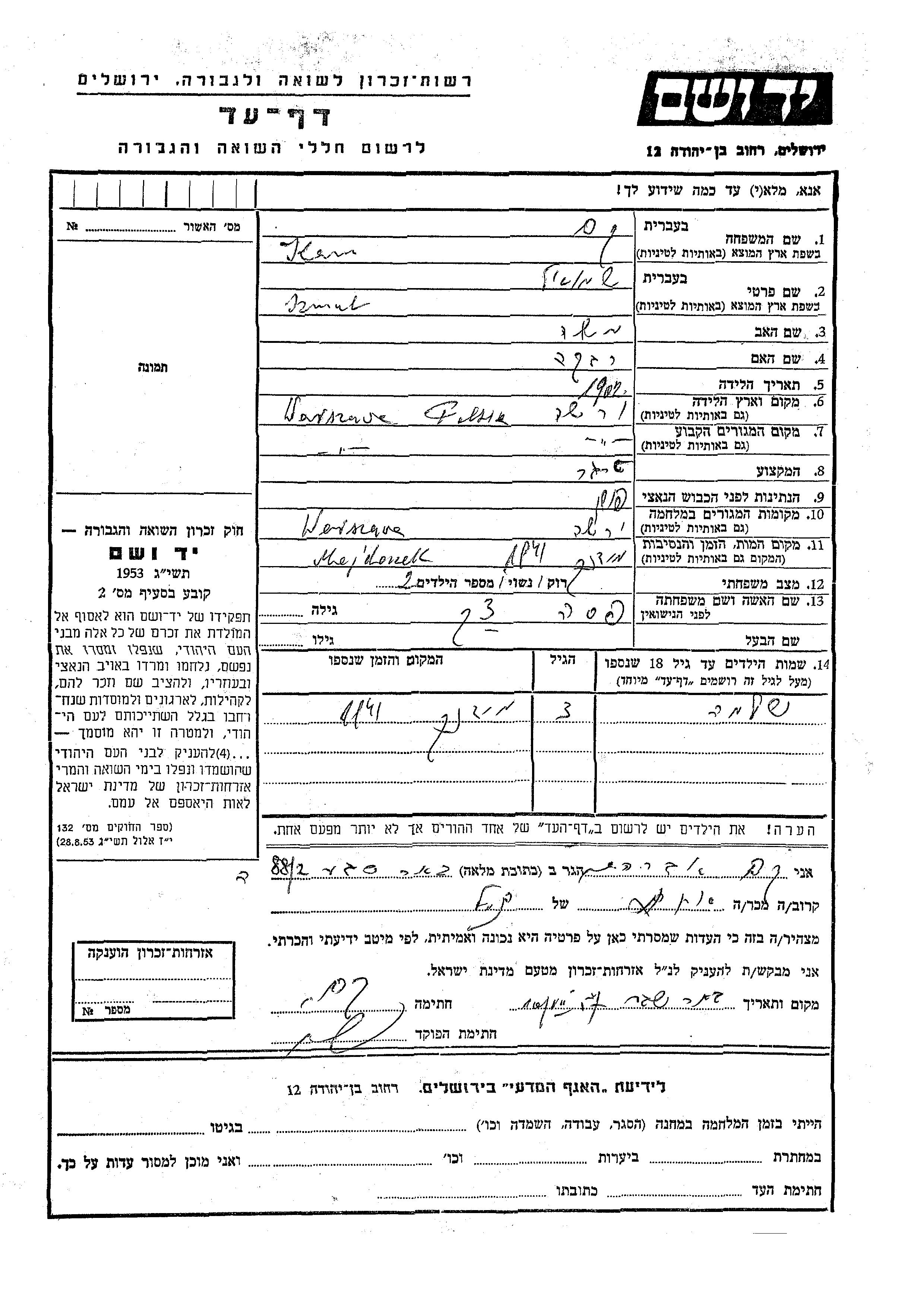 Shlomo Kam wurde Er war der Sohn von Szmuel und Pesa, geb. Chek. Er war Kind. Vor dem Zweiten Weltkrieg lebte er in Warsaw, Polen. Während des Krieges war er in Warschau, Polen.