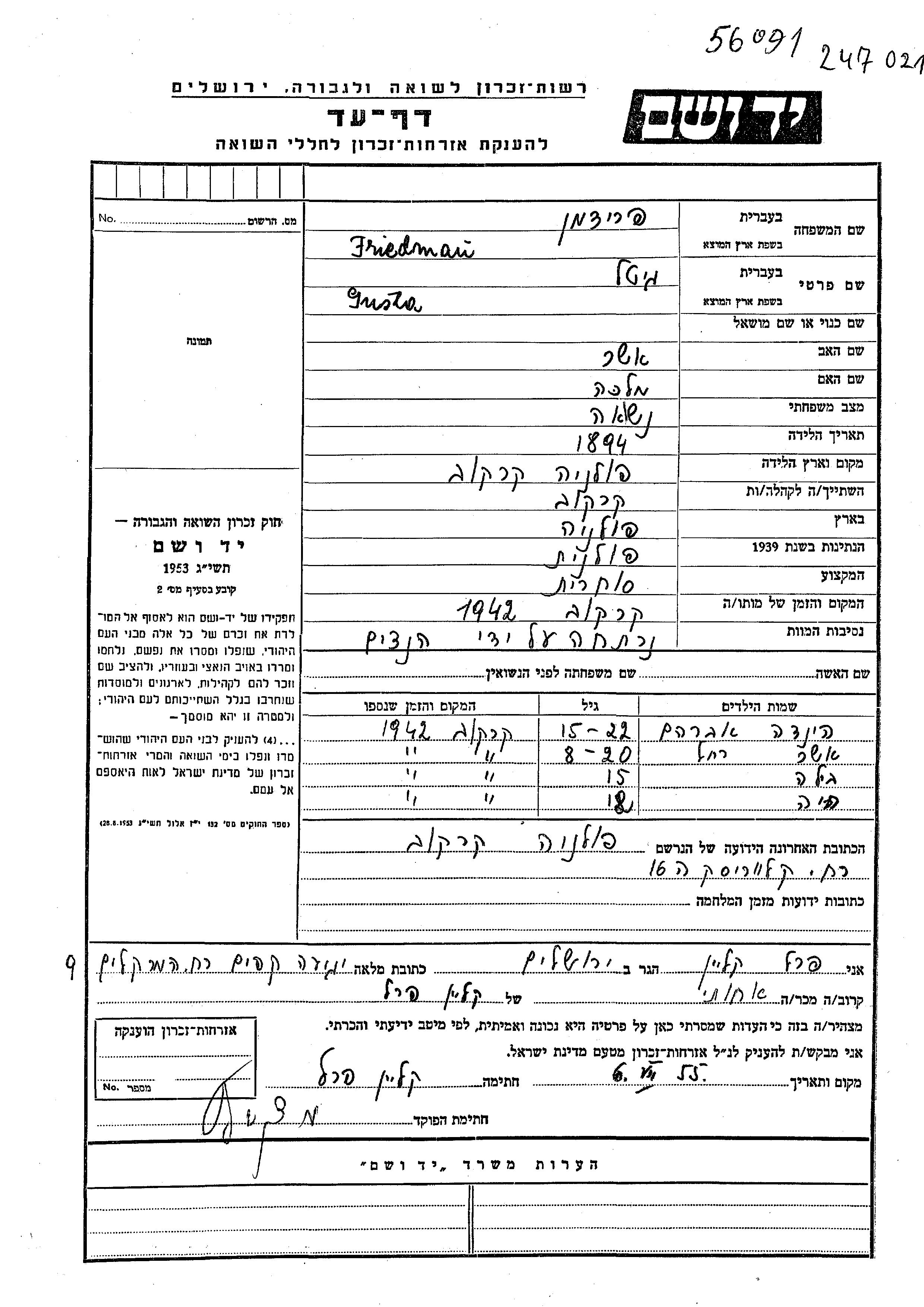 Rakhel Friedman wurde Sie war die Tochter von Gusta Gitel. Sie war Kind. Vor dem Zweiten Weltkrieg lebte sie in Krakow, Polen.