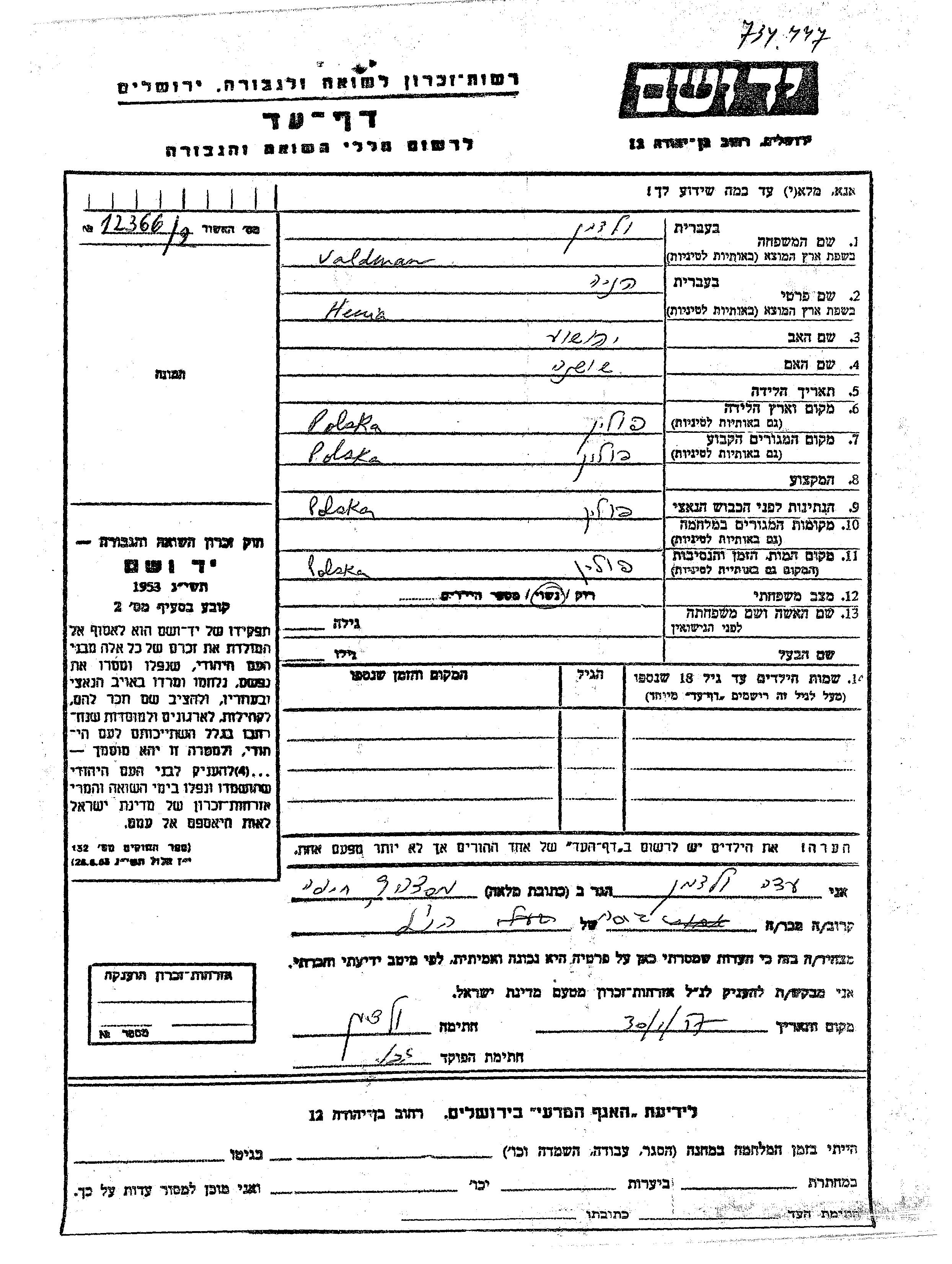 Henia Valdman wurde in Polen geboren. Sie war die Tochter von Yehoshua und Shoshana. Sie war Verheiratet. Vor dem Zweiten Weltkrieg lebte sie in Polen.