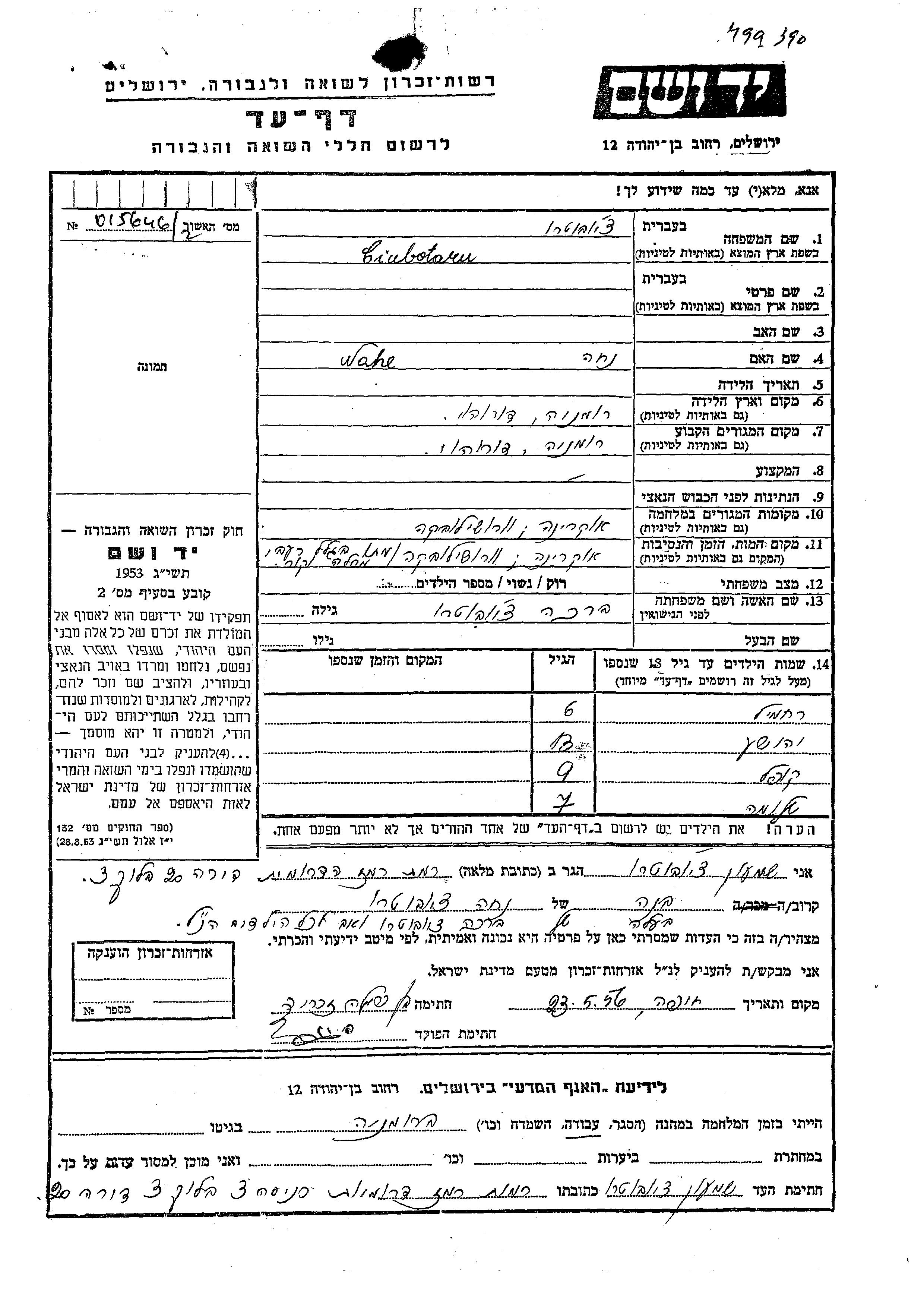 Kopel Ciabotaru wurde Er war der Sohn von Shimon und Brakha. Er war Kind. Vor dem Zweiten Weltkrieg lebte er in Dorohoi, Rumänien. Während des Krieges war er in Voroshilovka, Ukraine (UdSSR).