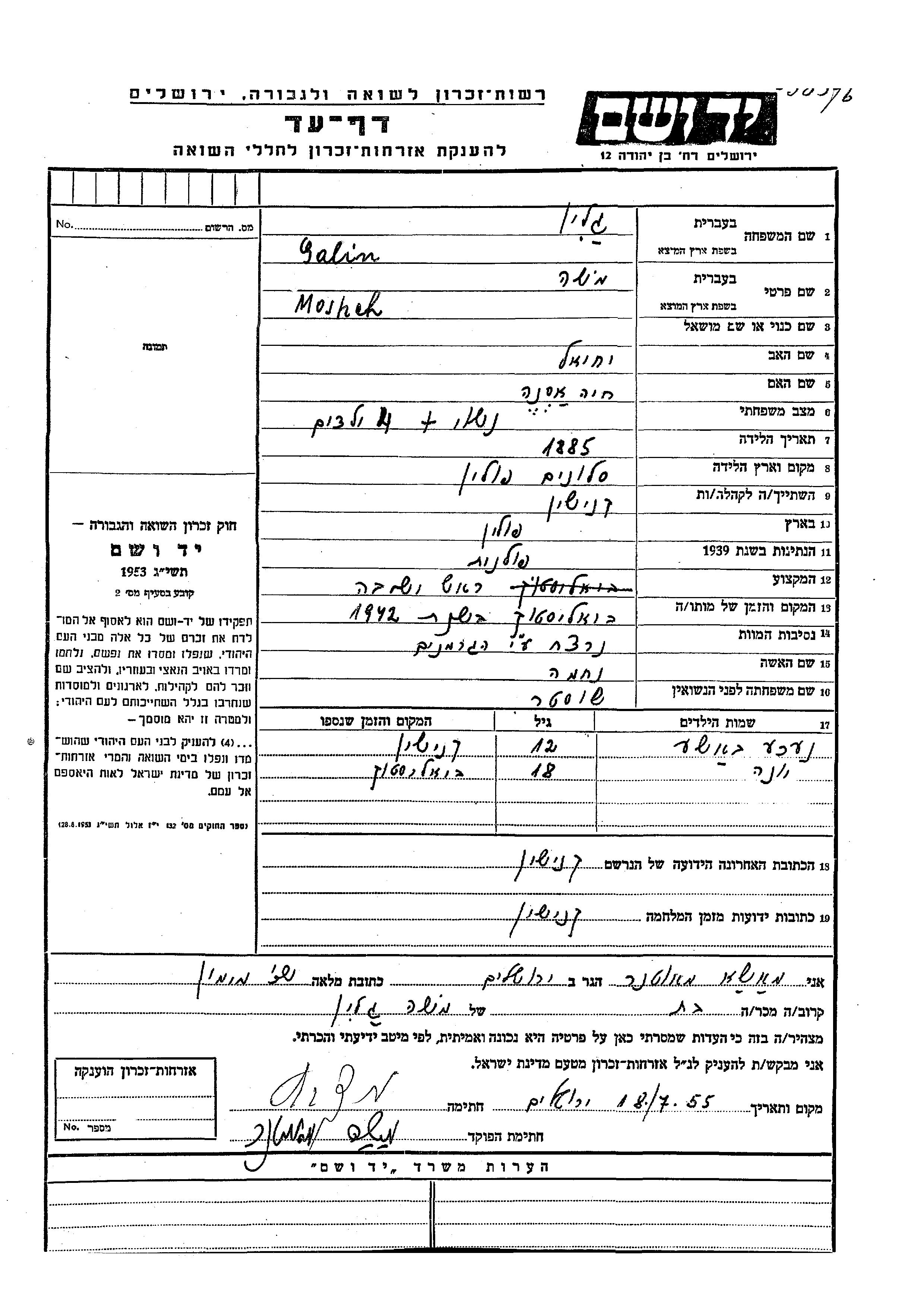 Nekhe Bashe Galin wurde Er/sie war der/ die Sohn/Tochter von Mosheh und Nekhama, geb. Shuster. Er/Sie war Kind. Vor dem Zweiten Weltkrieg er/sie in Knishin, Polen. Während des Krieges war er/sie in Knishin, Polen.
