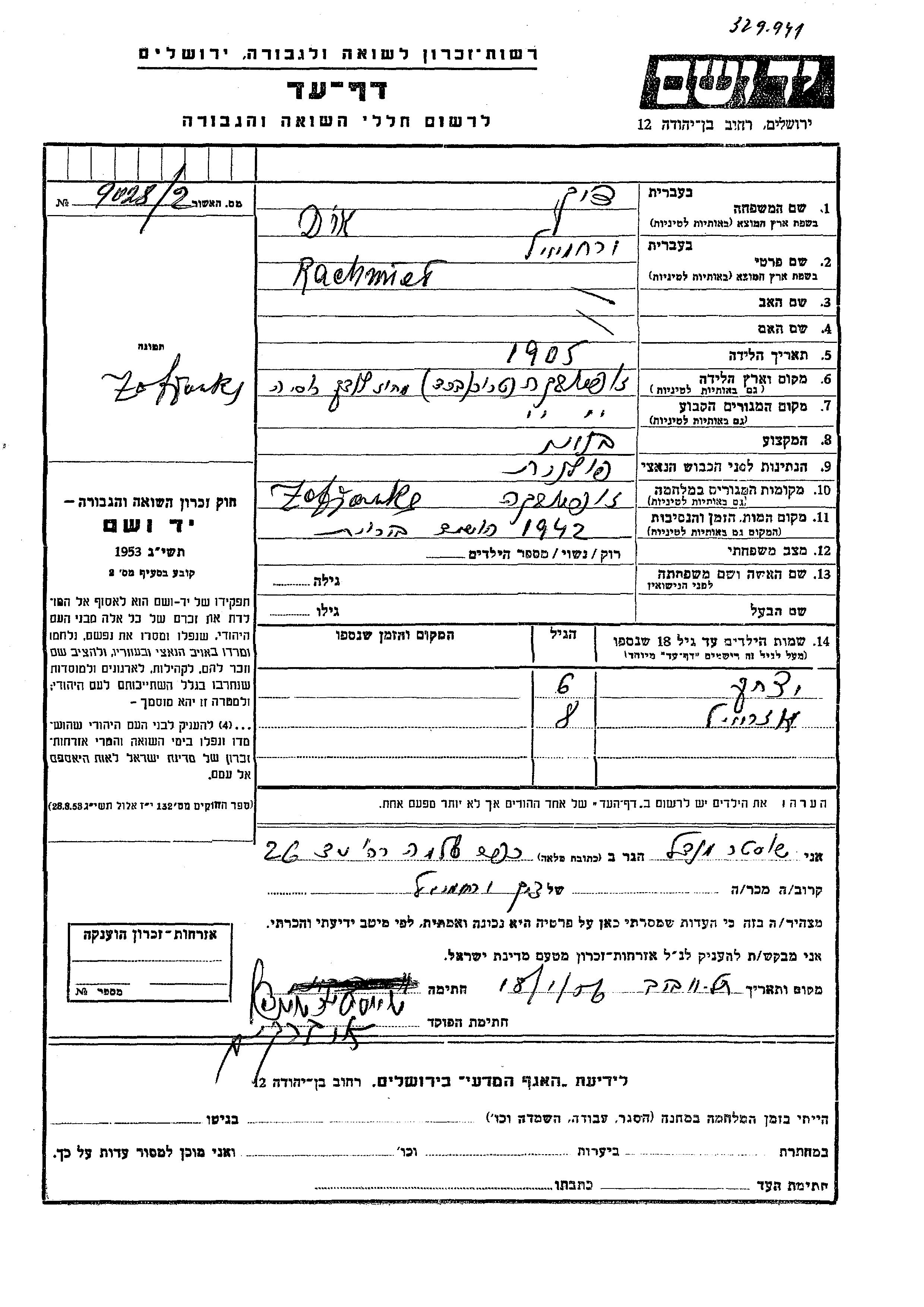 Yitzkhak Dik wurde Er war der Sohn von Rachmiel. Er war Kind. Vor dem Zweiten Weltkrieg lebte er in Zofjówka, Polen. Während des Krieges war er in Zofjówka, Polen.