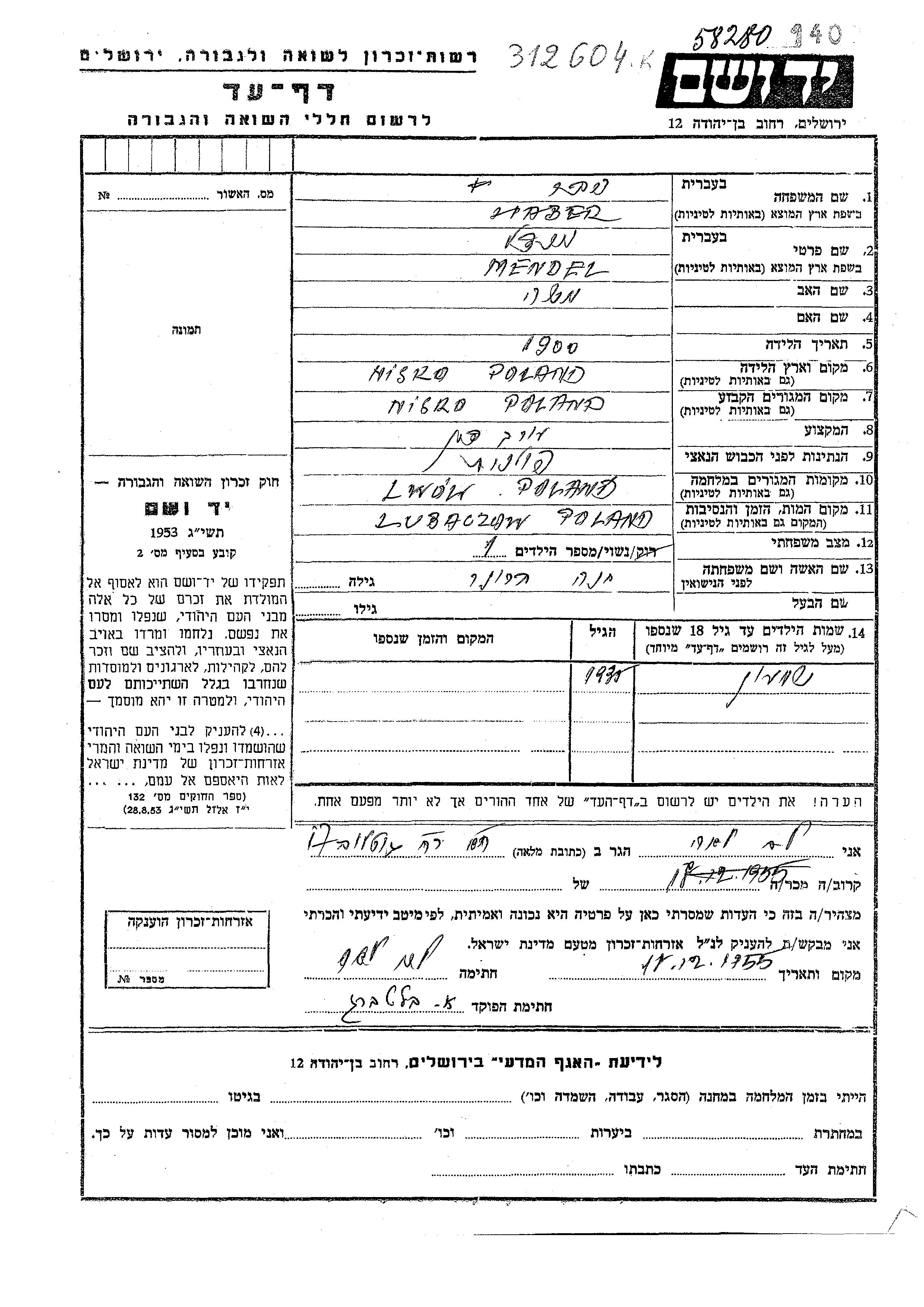 Haber Shimon 1935 Nisko, Polen Gedenkblatt