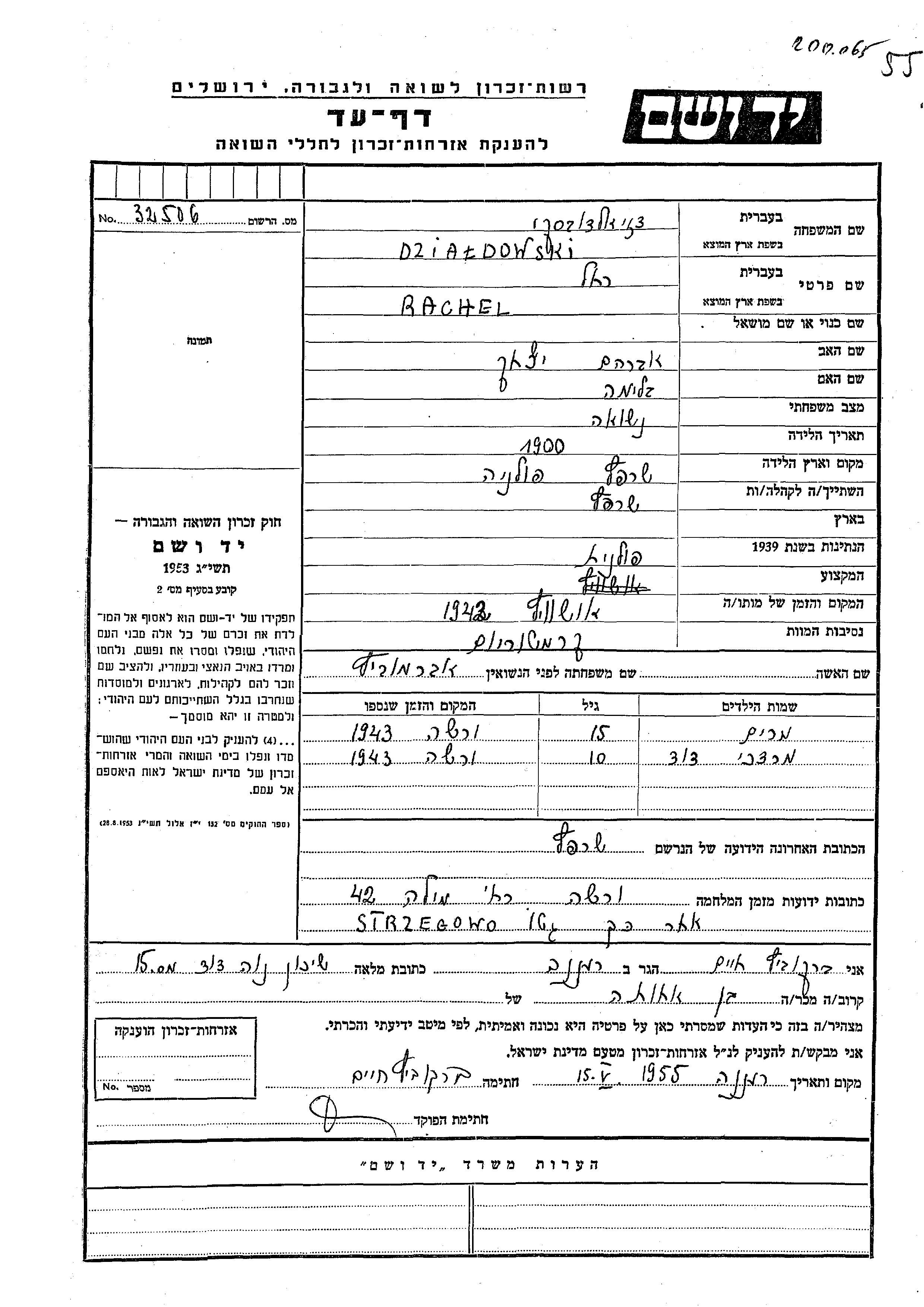 Dzialdowski Mordekhai David 1933 Sierpc, Polen Gedenkblatt