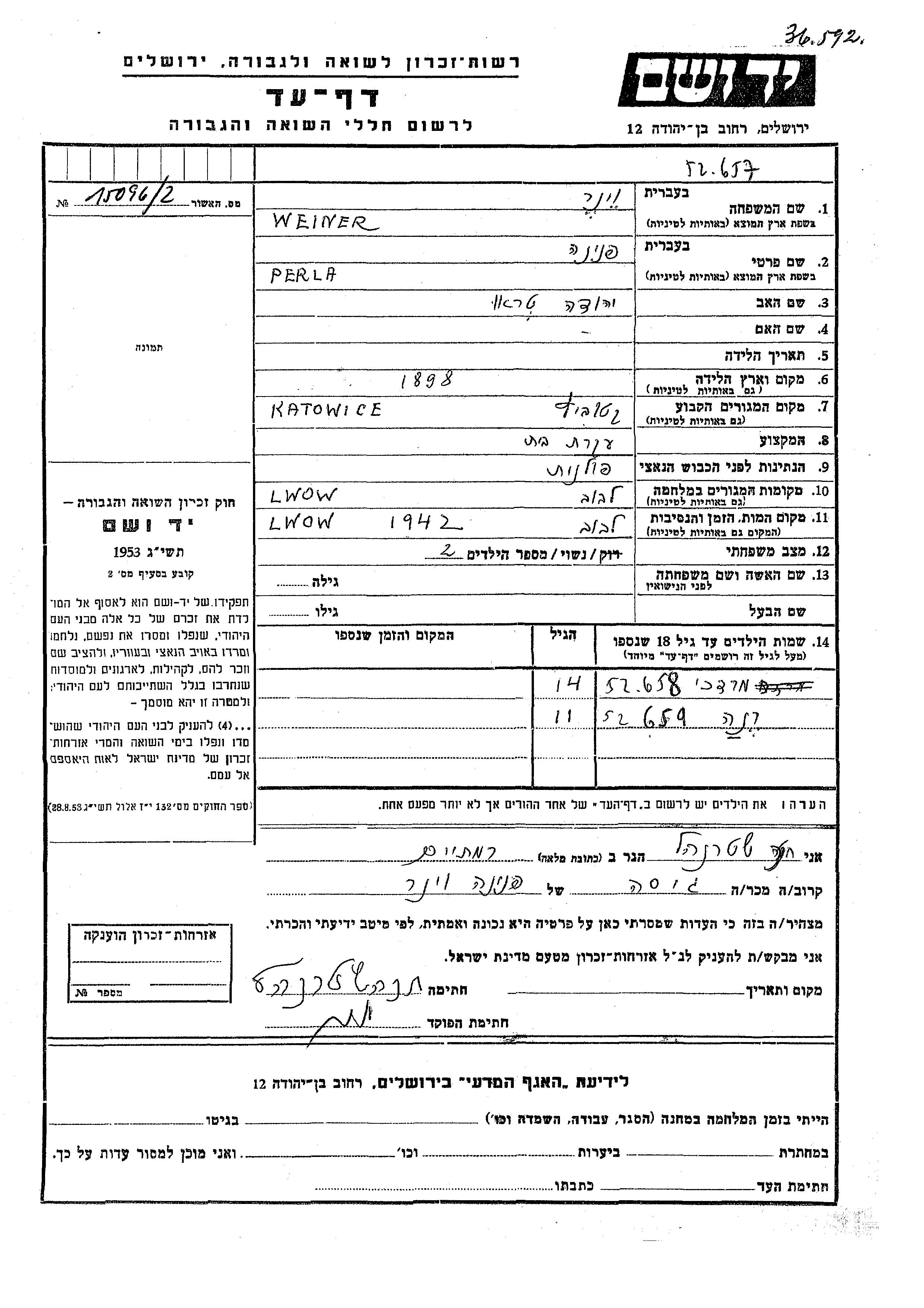 Rene Weiner Viner wurde Er/sie war der/ die Sohn/Tochter von Perla Pnina, geb. Trau. Er/Sie war Kind. Vor dem Zweiten Weltkrieg er/sie in Katowice, Polen. Während des Krieges war er/sie in Lwow, Polen.