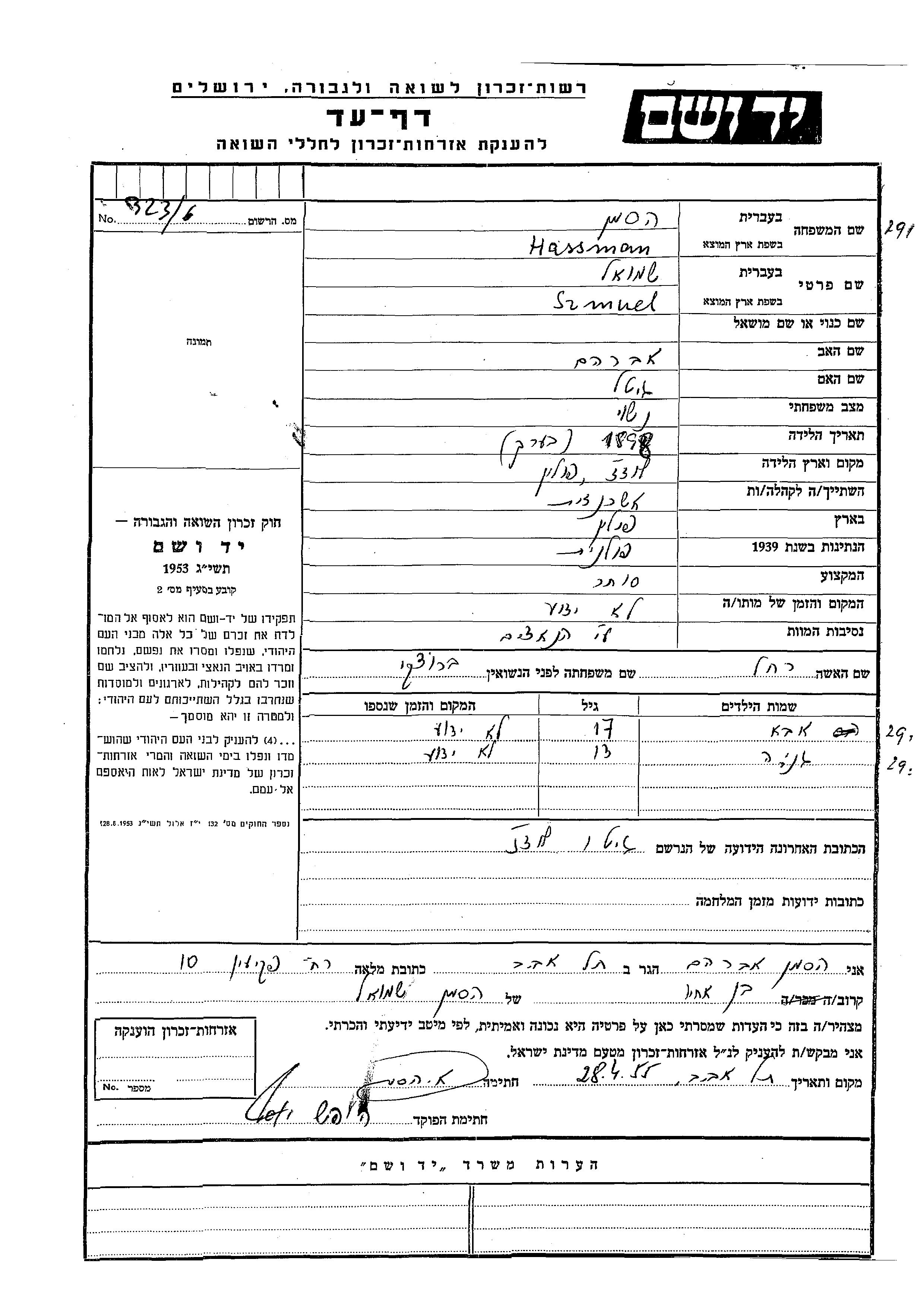 Genya Hassman wurde Er/sie war der/ die Sohn/Tochter von Szmuel und Rakhel, geb. Brutzki. Er/Sie war Kind. Vor dem Zweiten Weltkrieg er/sie in Polen.