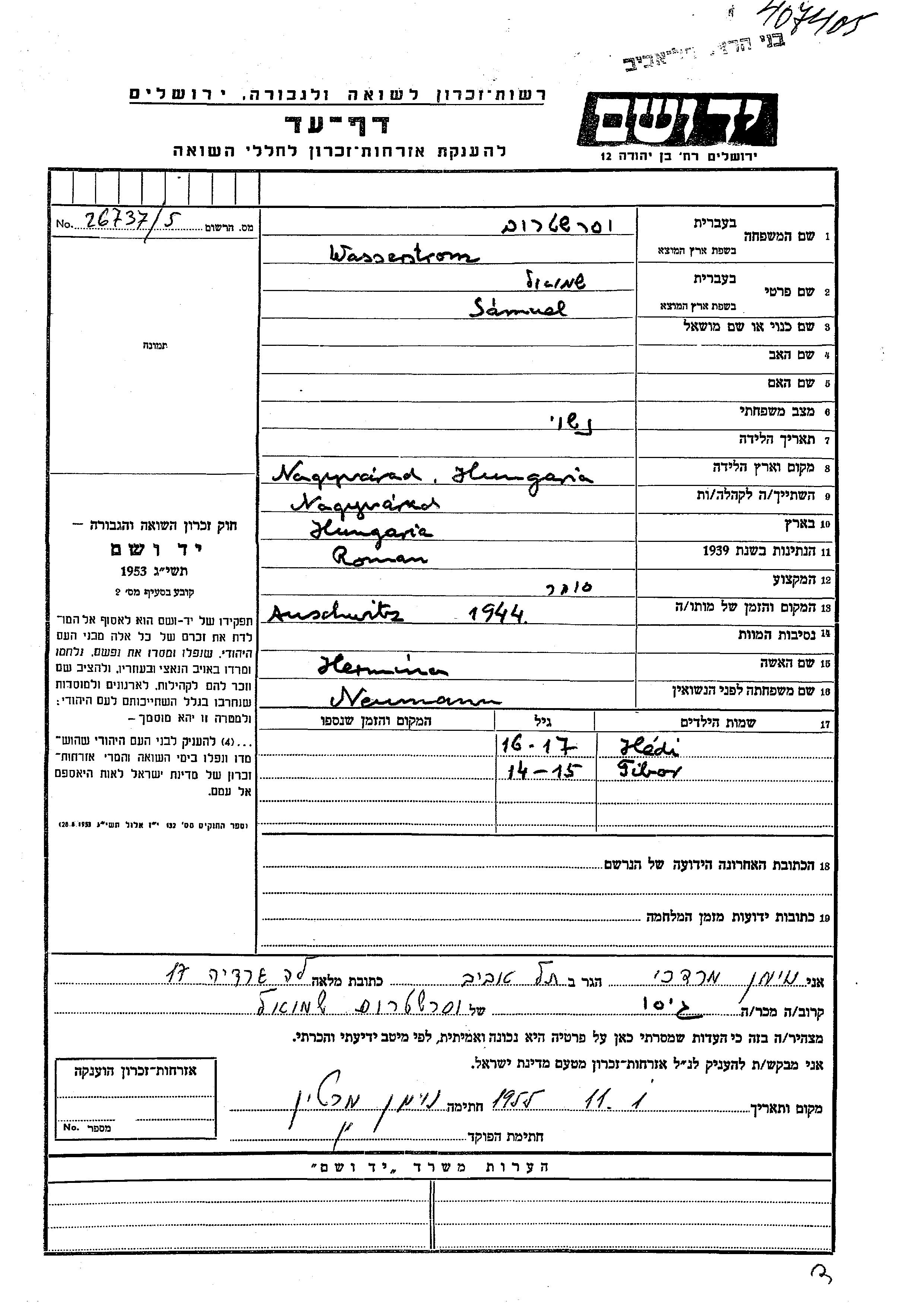 Tibor Waserstrom wurde Er war der Sohn von Shmuel und Hermina, geb. Neumann. Er war Kind.