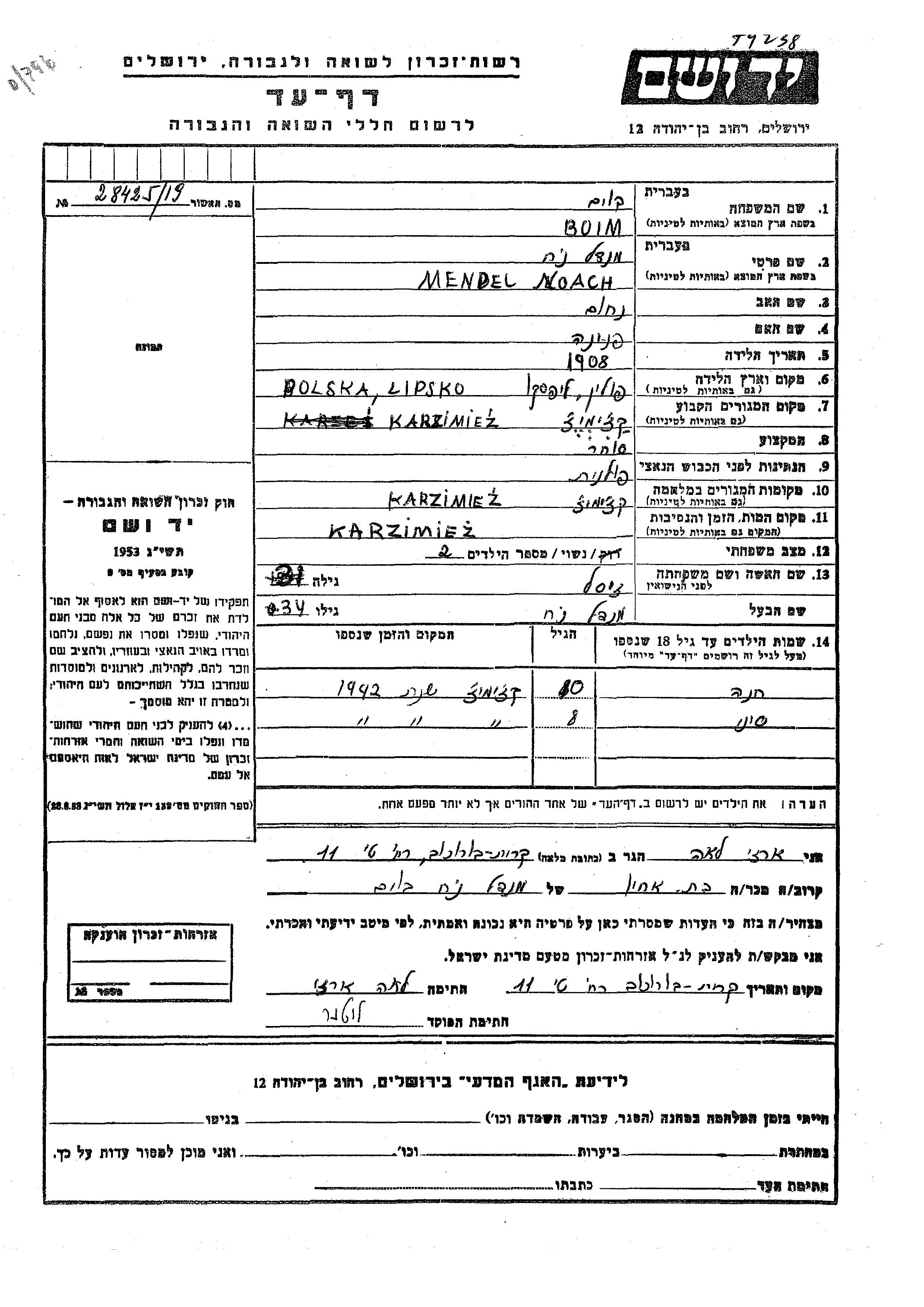 Khana Boim wurde Sie war die Tochter von Mendel Noach und Zysl. Sie war Kind. Vor dem Zweiten Weltkrieg lebte sie in Kazimierz Dolny, Polen. Während des Krieges war sie in Kazimierz Dolny, Polen.