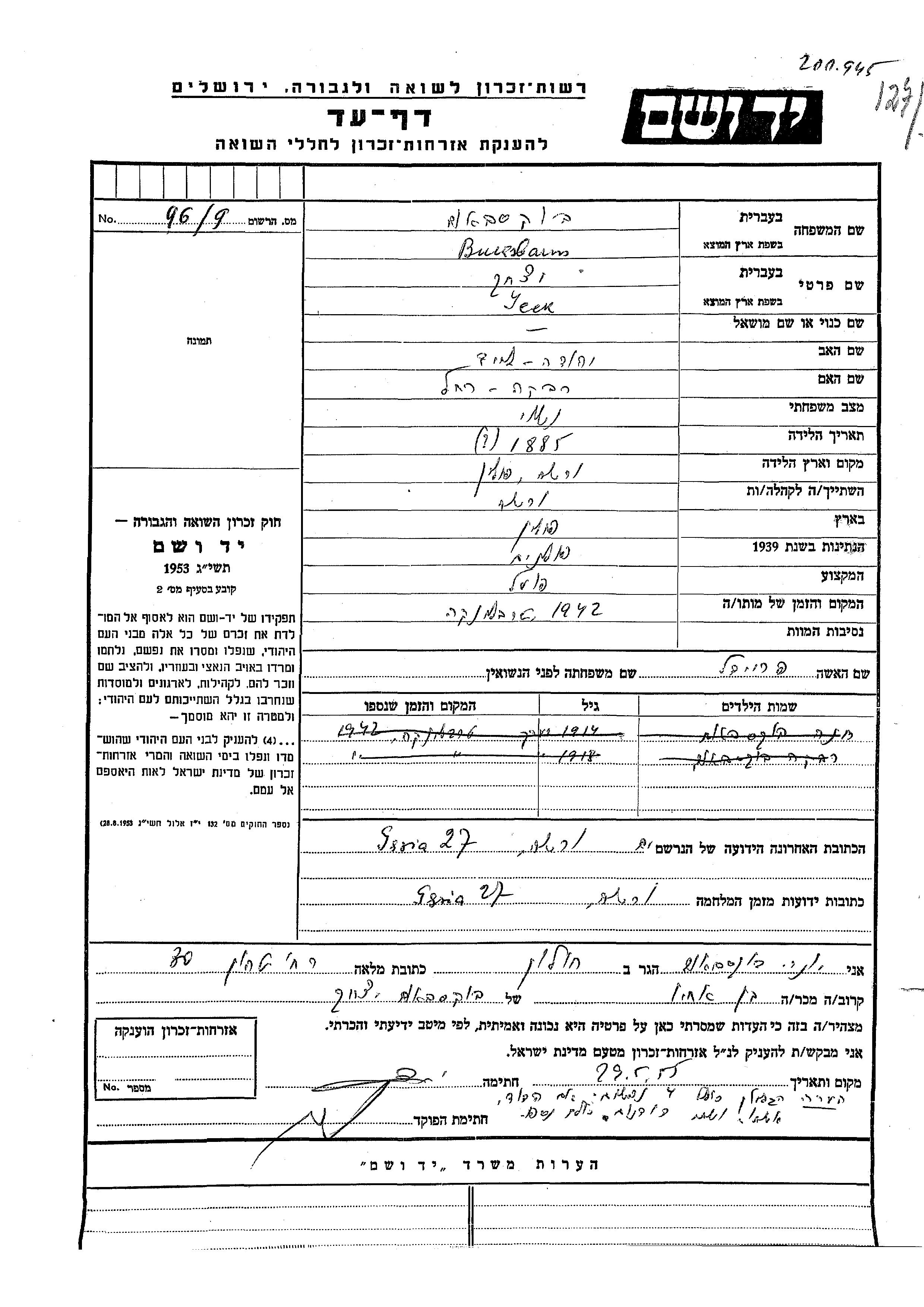 Buksbaum Rivka 1918 Polen Gedenkblatt