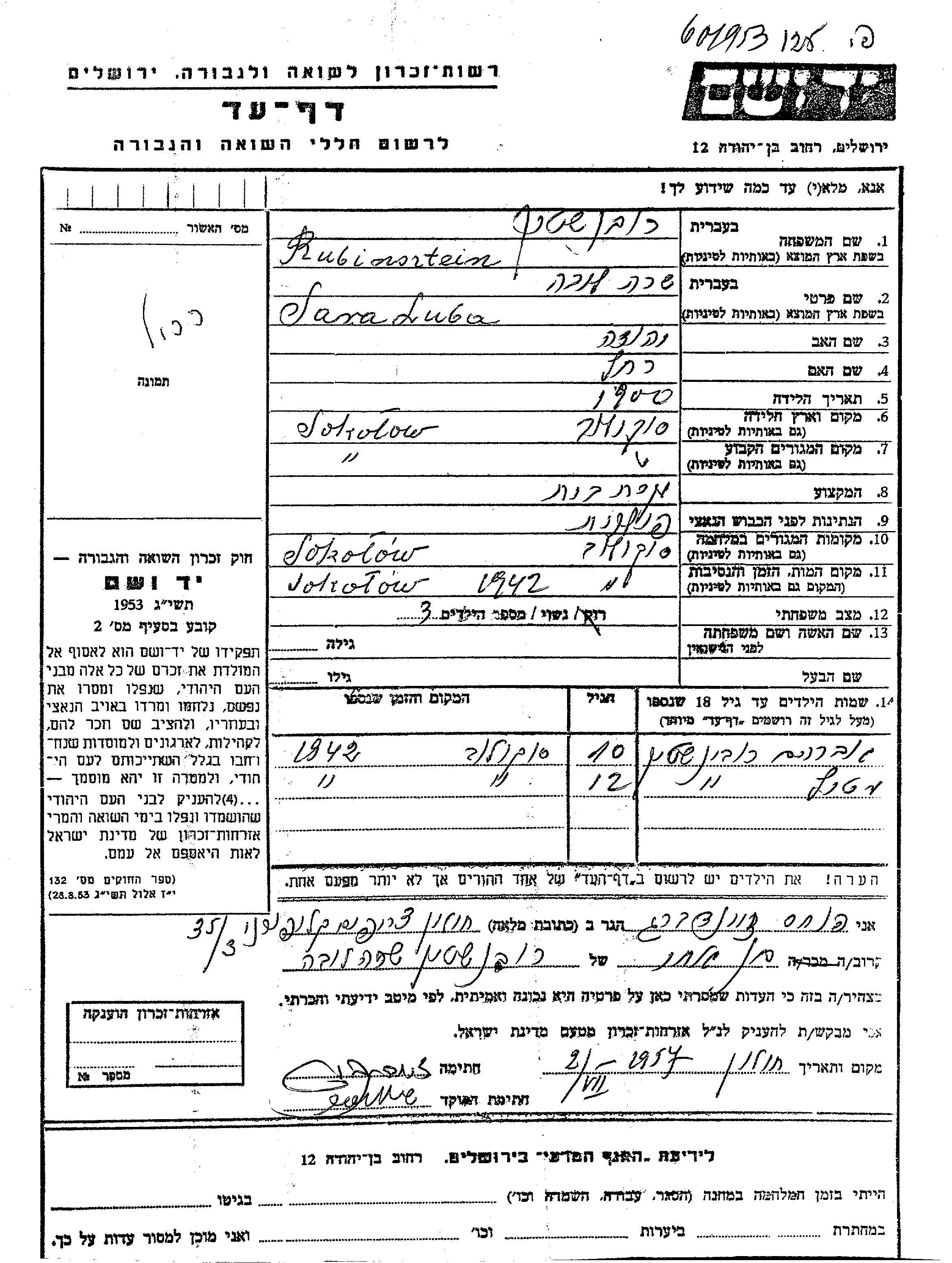 Matil Rubinstein wurde Er/sie war der/ die Sohn/Tochter von Luba Sara. Er/Sie war Kind. Vor dem Zweiten Weltkrieg er/sie in Sokolow, Polen. Während des Krieges war er/sie in Sokolow, Polen.