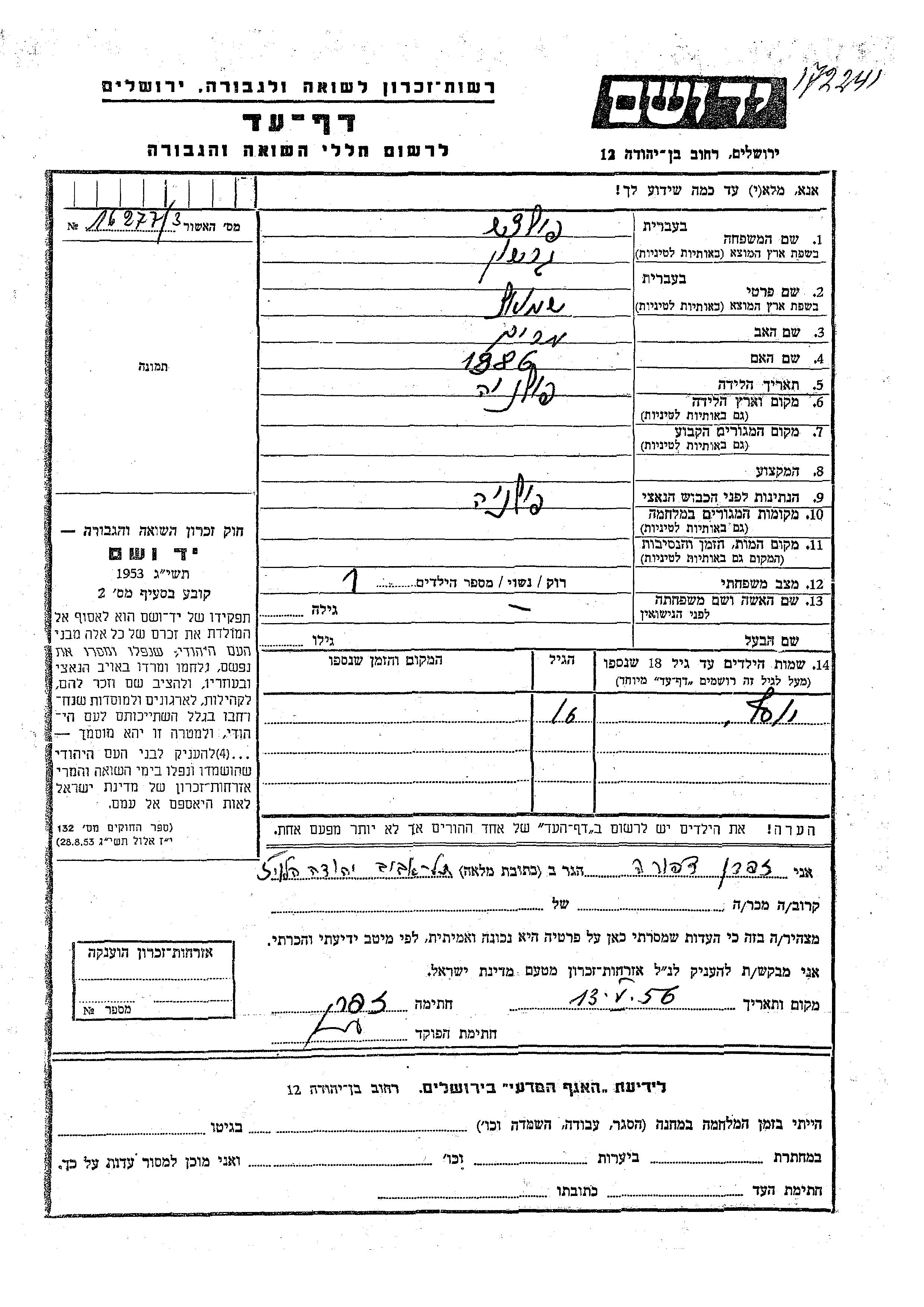 Foldesh Yosef unbekannter Ort, Gedenkblatt