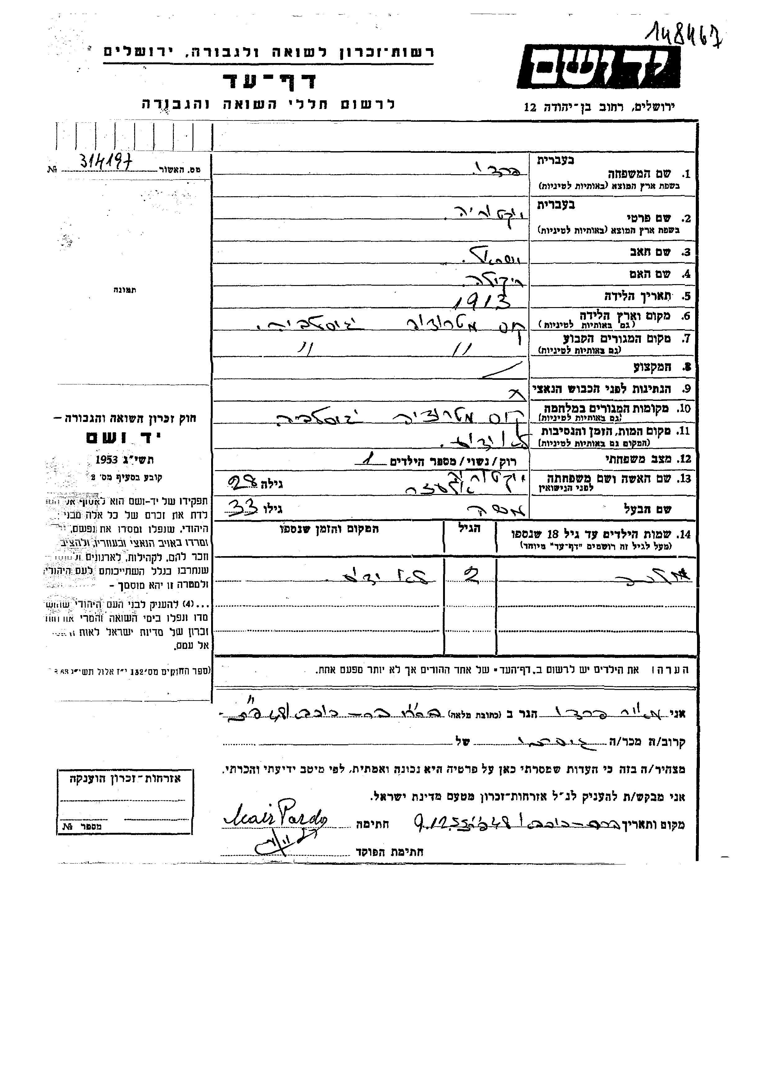 Malka Pardo wurde Sie war die Tochter von Moshe und Viktoria, geb. Elazar. Sie war Kind. Vor dem Zweiten Weltkrieg lebte sie in Kosovska Mitrovica, Jugoslawien. Während des Krieges war sie in Kosovska Mitrovica, Jugoslawien.