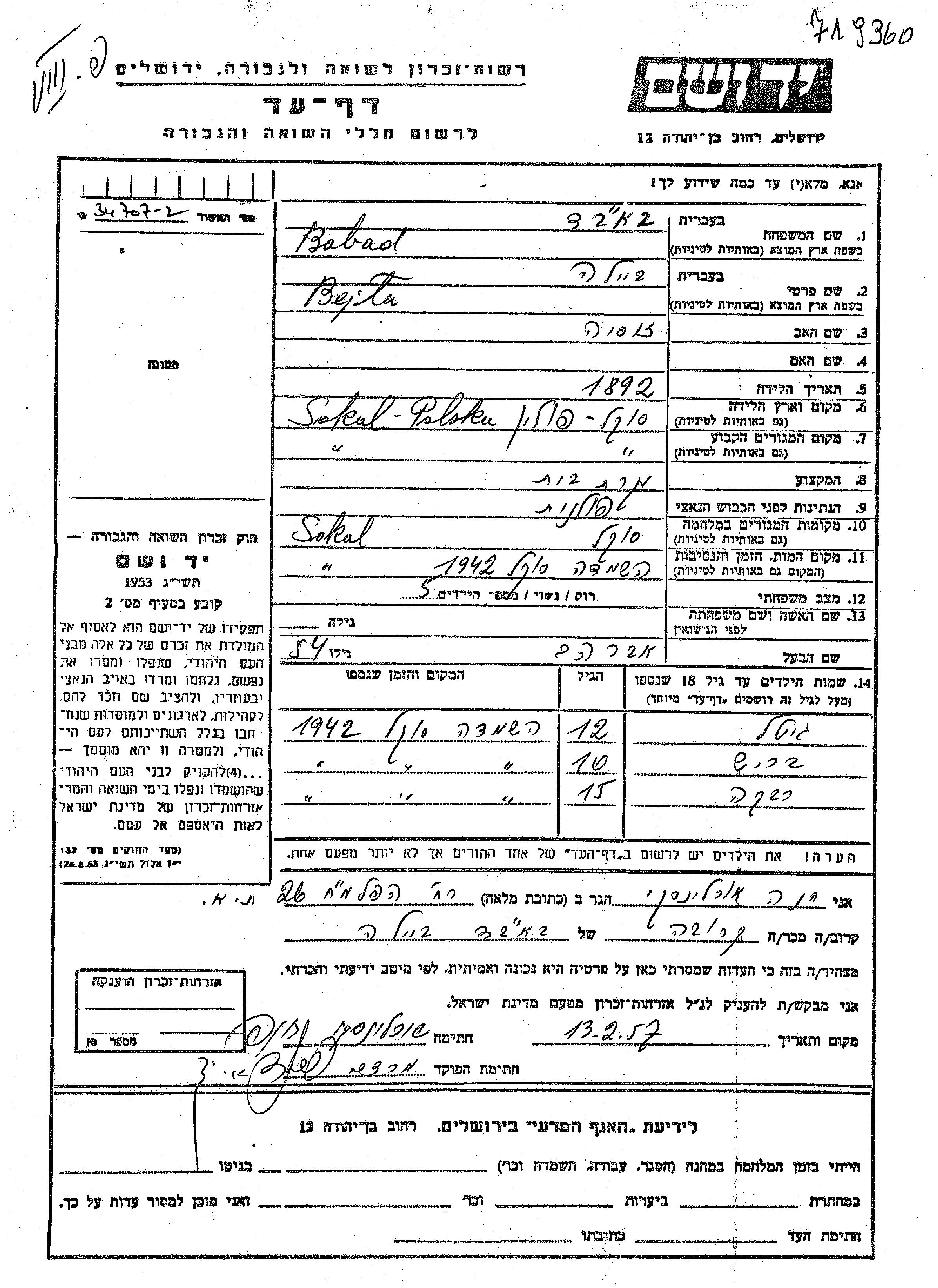 Berish Babad wurde Er war der Sohn von Avraham und Bejla. Er war Kind. Vor dem Zweiten Weltkrieg lebte er in Sokal, Polen. Während des Krieges war er in Sokal, Polen.