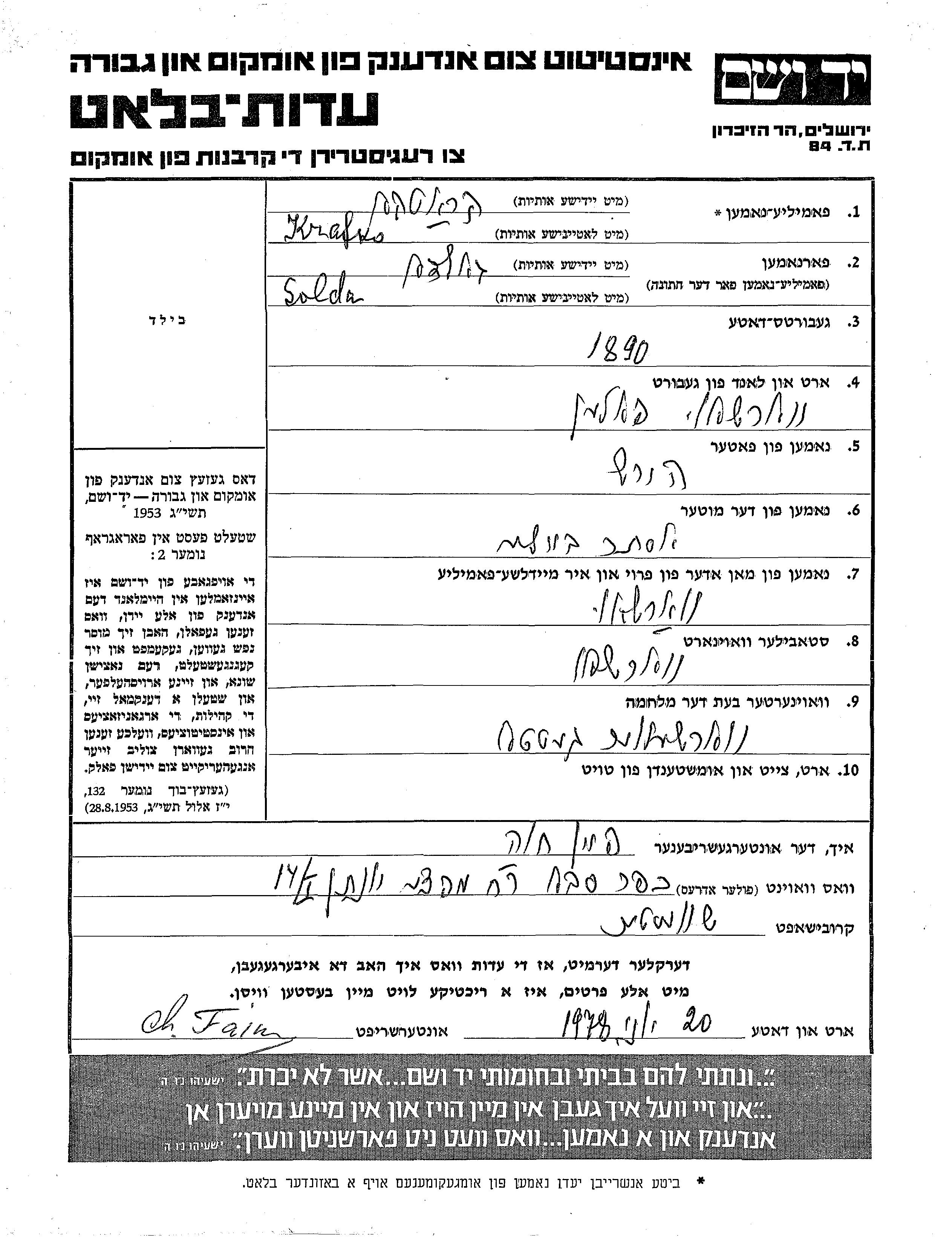 Golda Kratka wurde im Jahr 1890 in Warsaw, Polen geboren. Sie war die Tochter von Hirsh und Ester Beile. Vor dem Zweiten Weltkrieg lebte sie in Warsaw, Polen. Während des Krieges war sie in Warsaw, Polen.