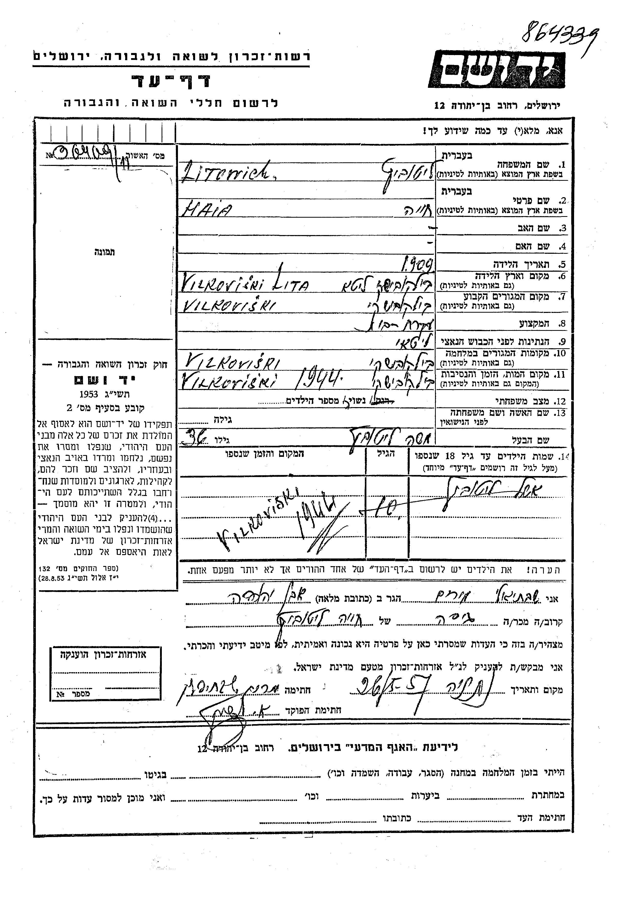 Yehoshua Litowich wurde Er war der Sohn von Moshe und Haia. Er war Kind. Vor dem Zweiten Weltkrieg lebte er in Vilkovishk, Litauen. Während des Krieges war er in Vilkovishk, Litauen.