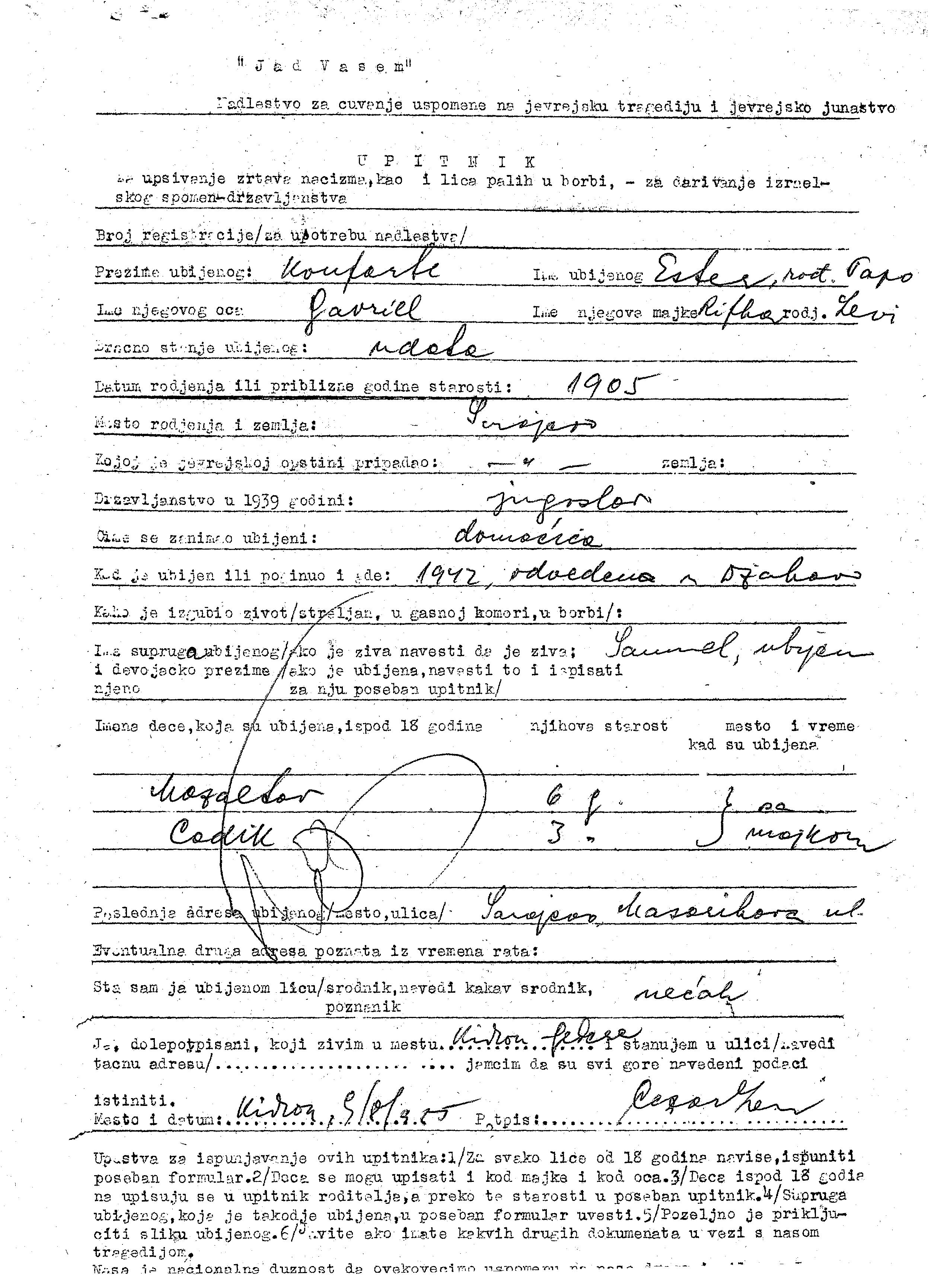 Ester wurde in der Schoah ermordet. Todesort: Djakovo, Jugoslawien im Jahr 1942.