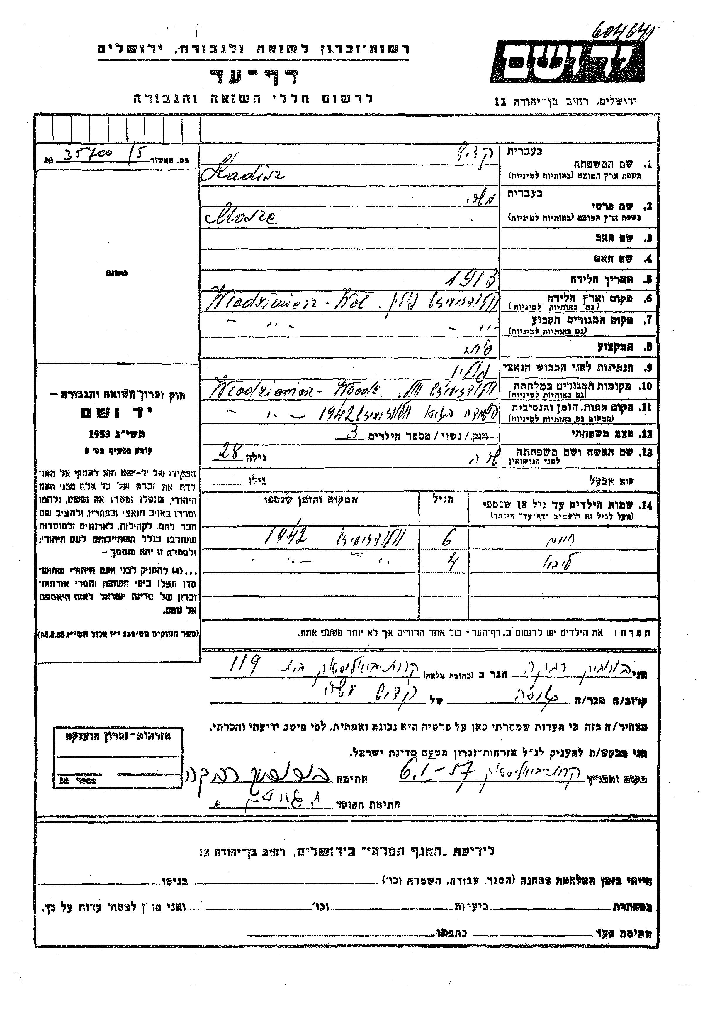 Khaim Kadisz wurde Er war der Sohn von Mosze und Sara. Er war Kind. Vor dem Zweiten Weltkrieg lebte er in Wlodzimierz, Polen. Während des Krieges war er in Wlodzimierz Wolynski, Polen.