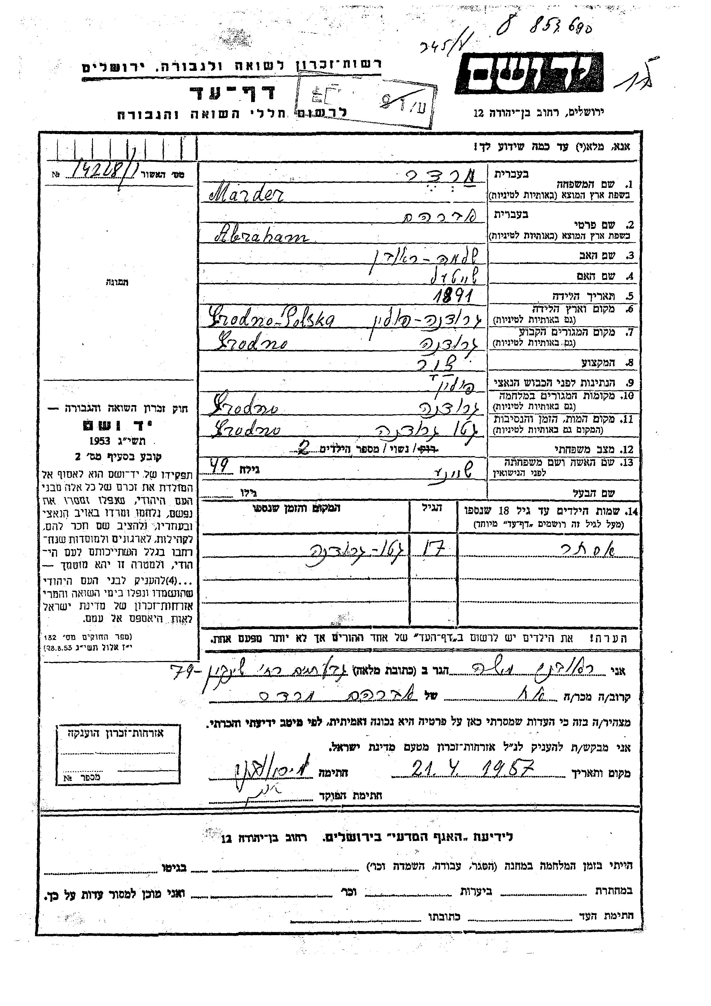 Ester Marder wurde Sie war die Tochter von Abraham und Sheine. Sie war Kind. Vor dem Zweiten Weltkrieg lebte sie in Grodno, Polen. Während des Krieges war sie in Grodno, Polen.