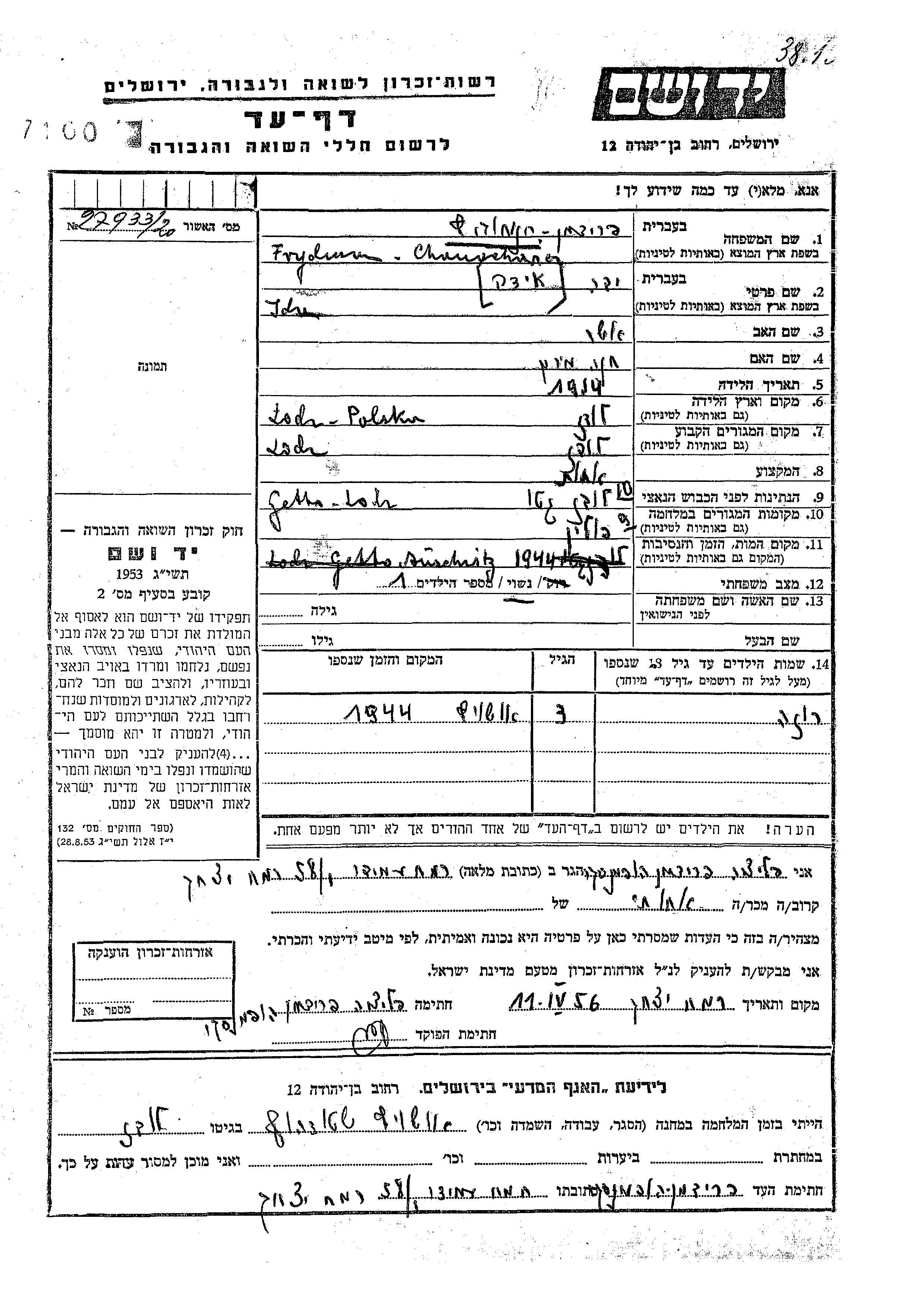Frydman Chanochowicz Roza Lodz, Polen Gedenkblatt