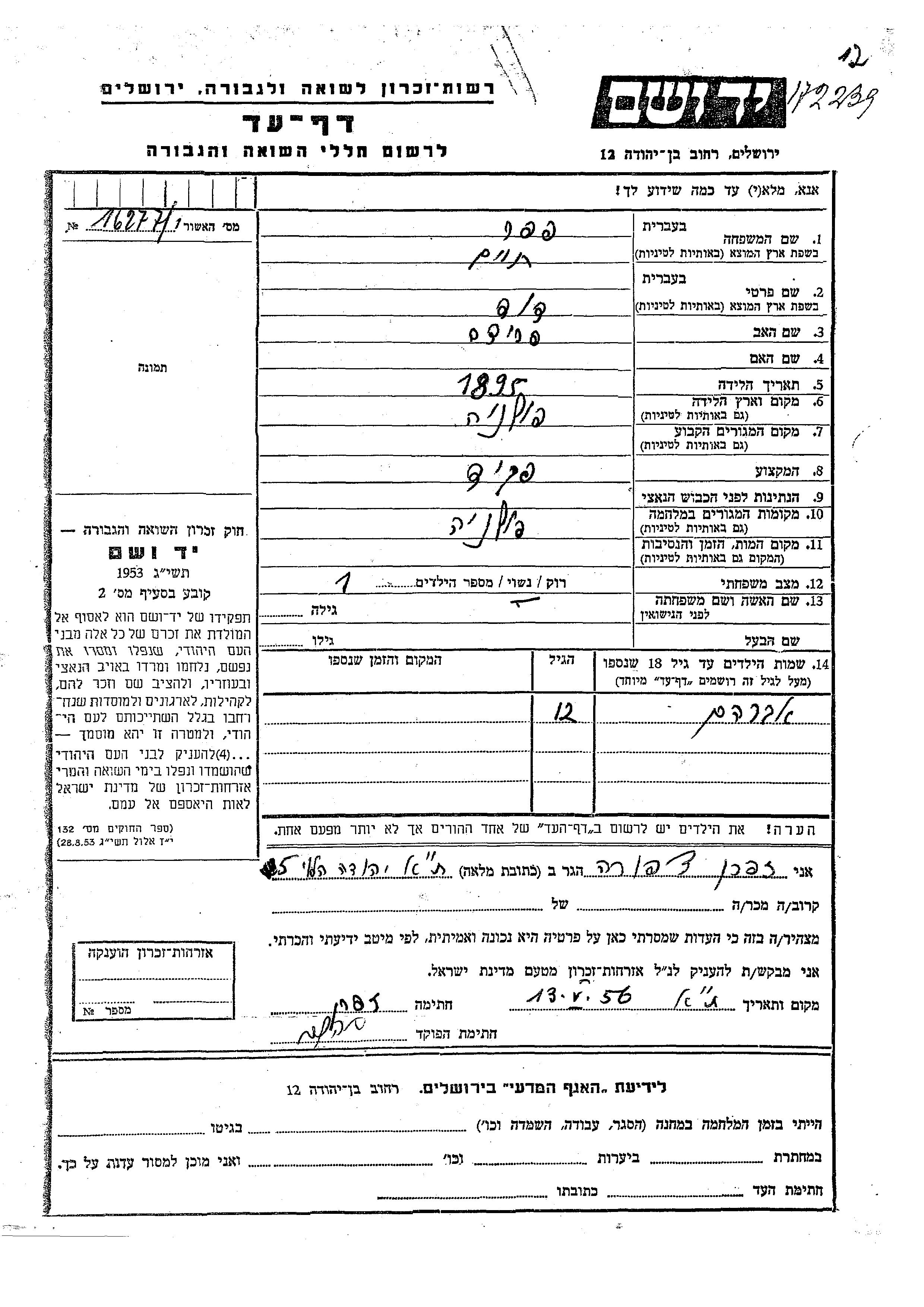 Fefer Avraham unbekannter Ort, Gedenkblatt