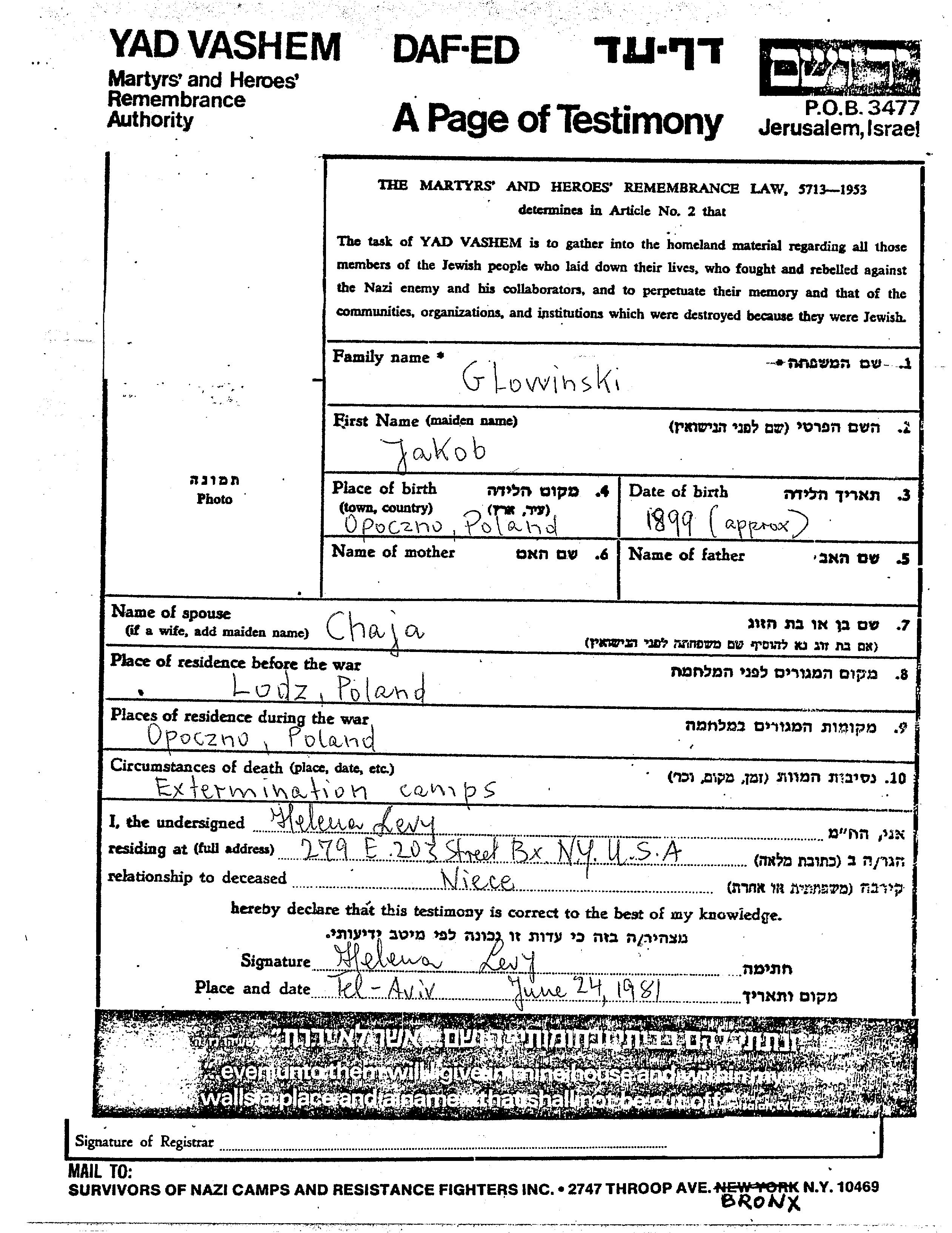 Suche nach einem Todesjahr im Zeitraum der Holocaust: 1933 bis 1945. Bitte wählen Sie 'Exakt' im Auswahlmenü, um nur nach einem einzelnen Jahr zu suchen, alternativ können Sie die flexibleren Optionen '+/- 2 Jahre' oder '+/- 5 Jahre' wählen.