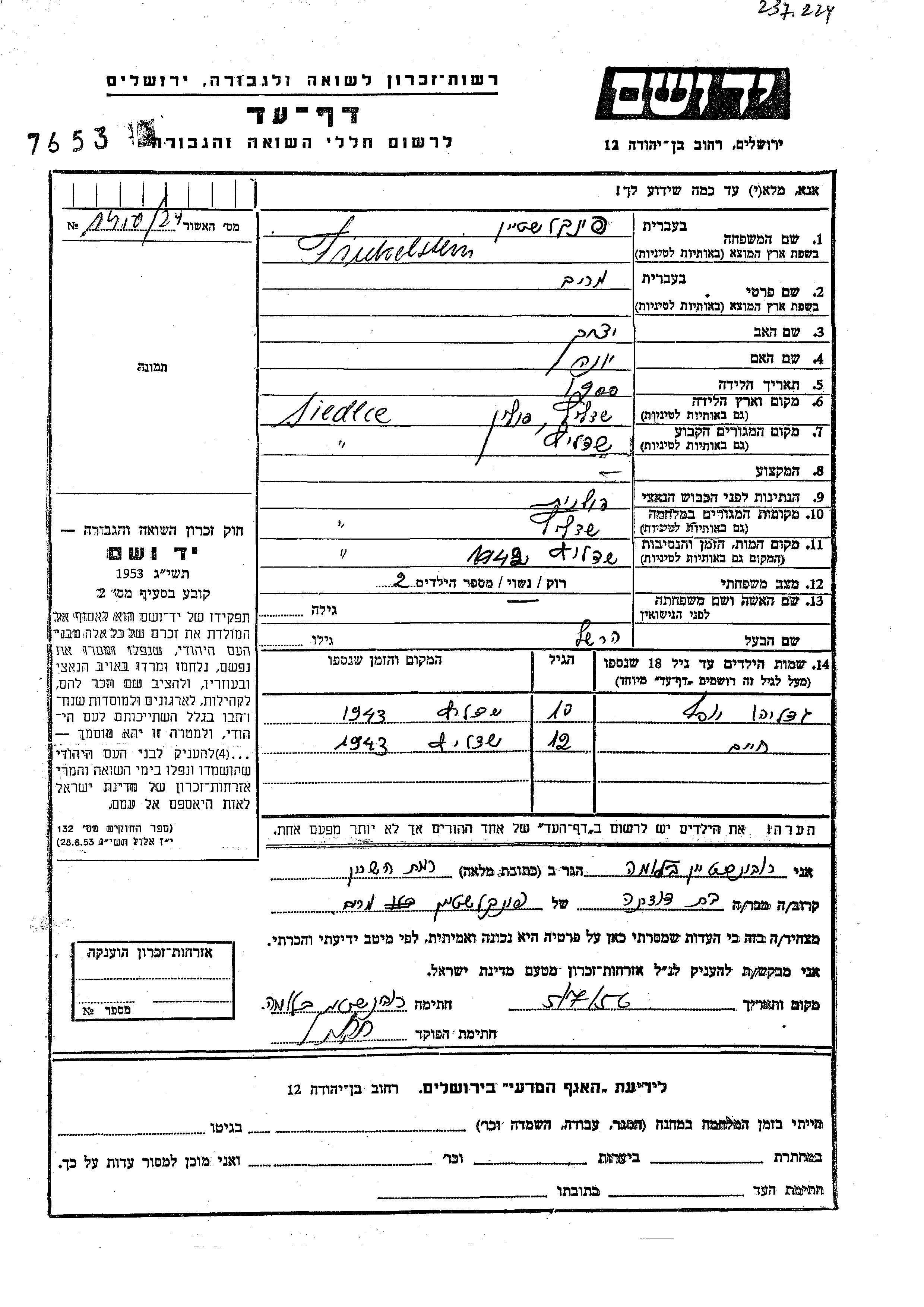 Gdaliyahu Yosef Finkelshtein wurde Er war der Sohn von Hershel und Miriam. Er war Kind. Vor dem Zweiten Weltkrieg lebte er in Siedlce, Polen. Während des Krieges war er in Siedlce, Polen.