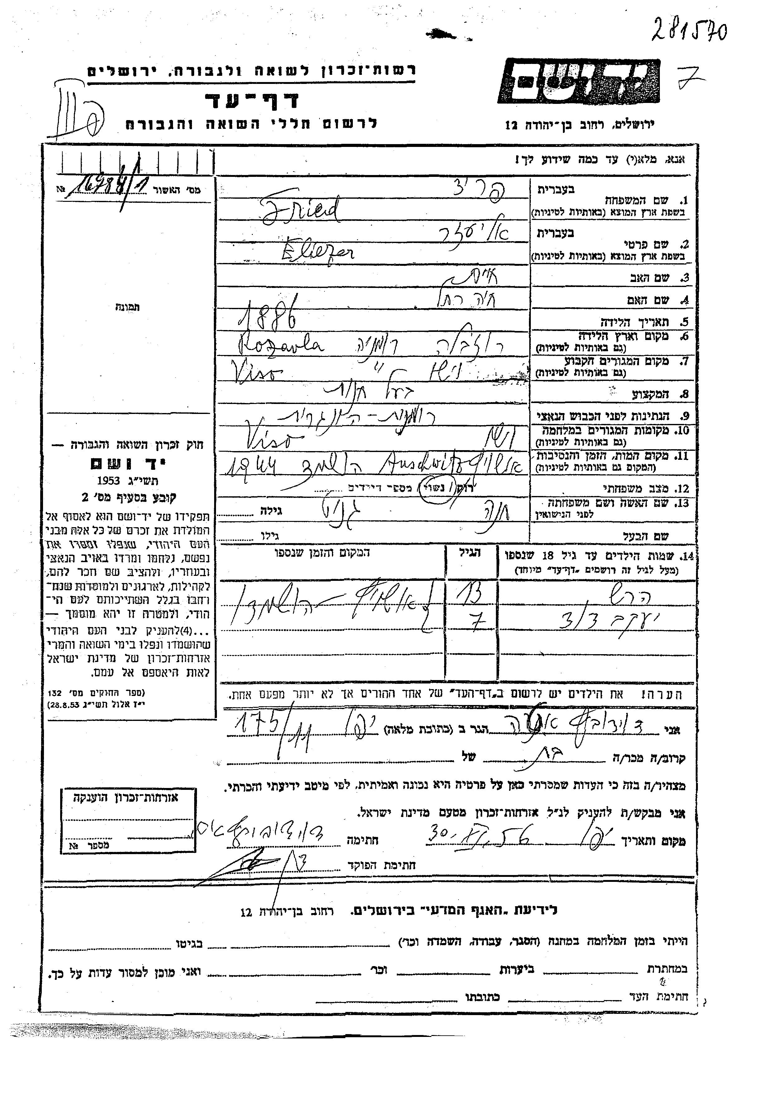 Hersh Fried wurde Er war der Sohn von Eliezer und Khana, geb. Genut. Er war Kind. Vor dem Zweiten Weltkrieg lebte er in Viso, Rumänien. Während des Krieges war er in Viso, Rumänien.