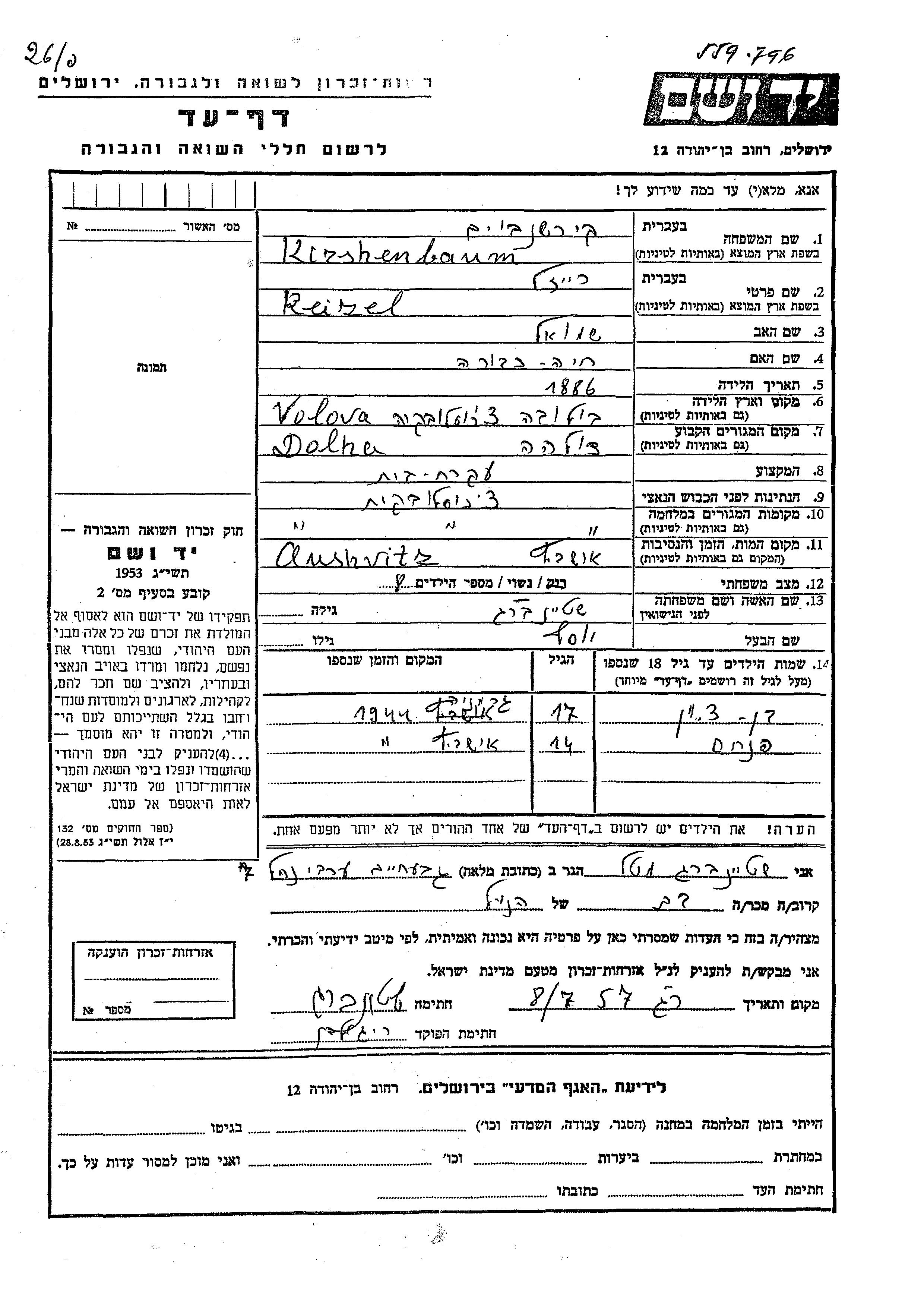 Bentzion Kirshenboim wurde Er war der Sohn von Yosef und Reizl, geb. Shteinberg. Er war Kind. Vor dem Zweiten Weltkrieg lebte er in Dolha, Tschechoslowakei. Während des Krieges war er in Dolha, Tschechoslowakei.