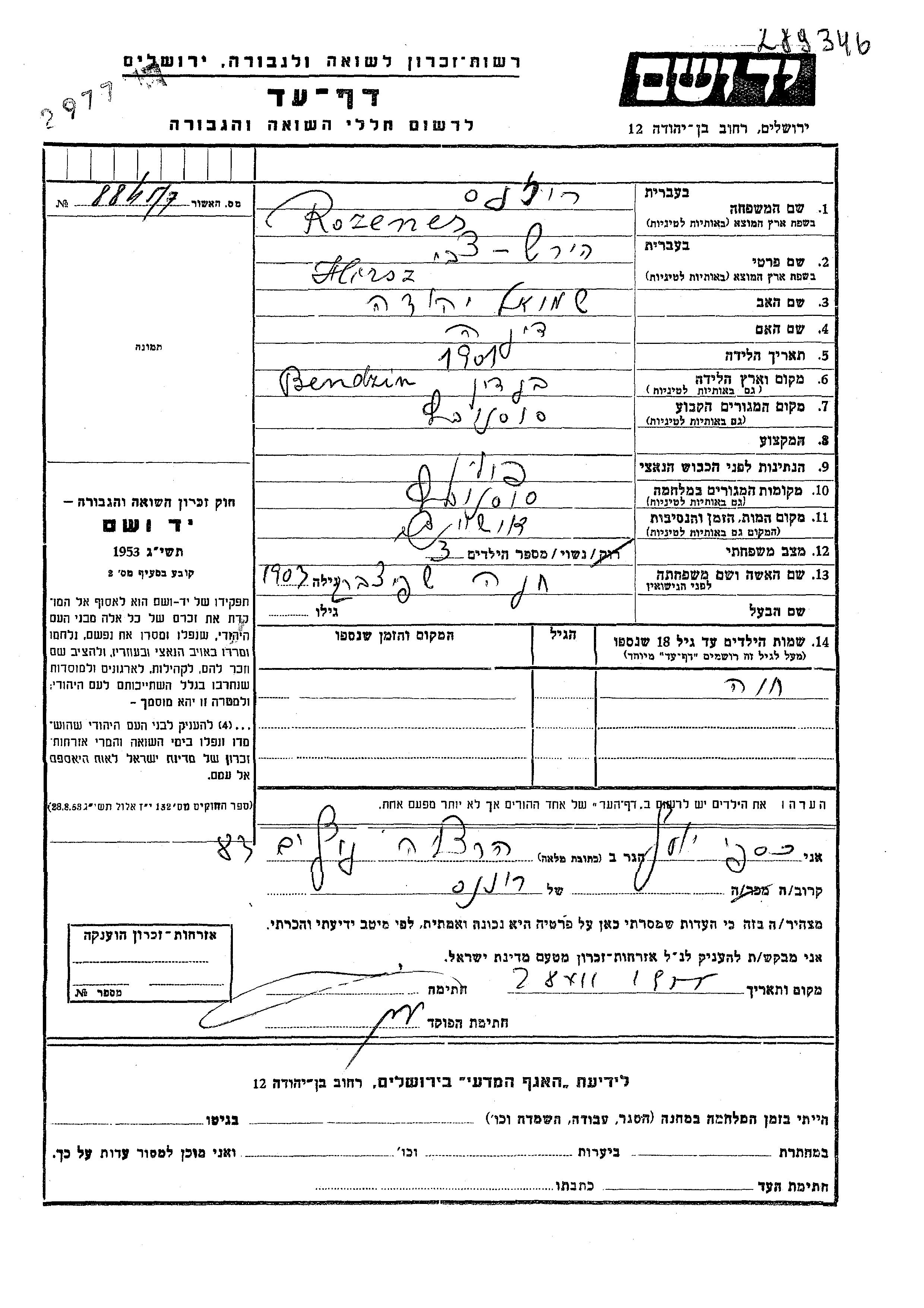 Rozenes Khava Sosnowiec, Polen Gedenkblatt