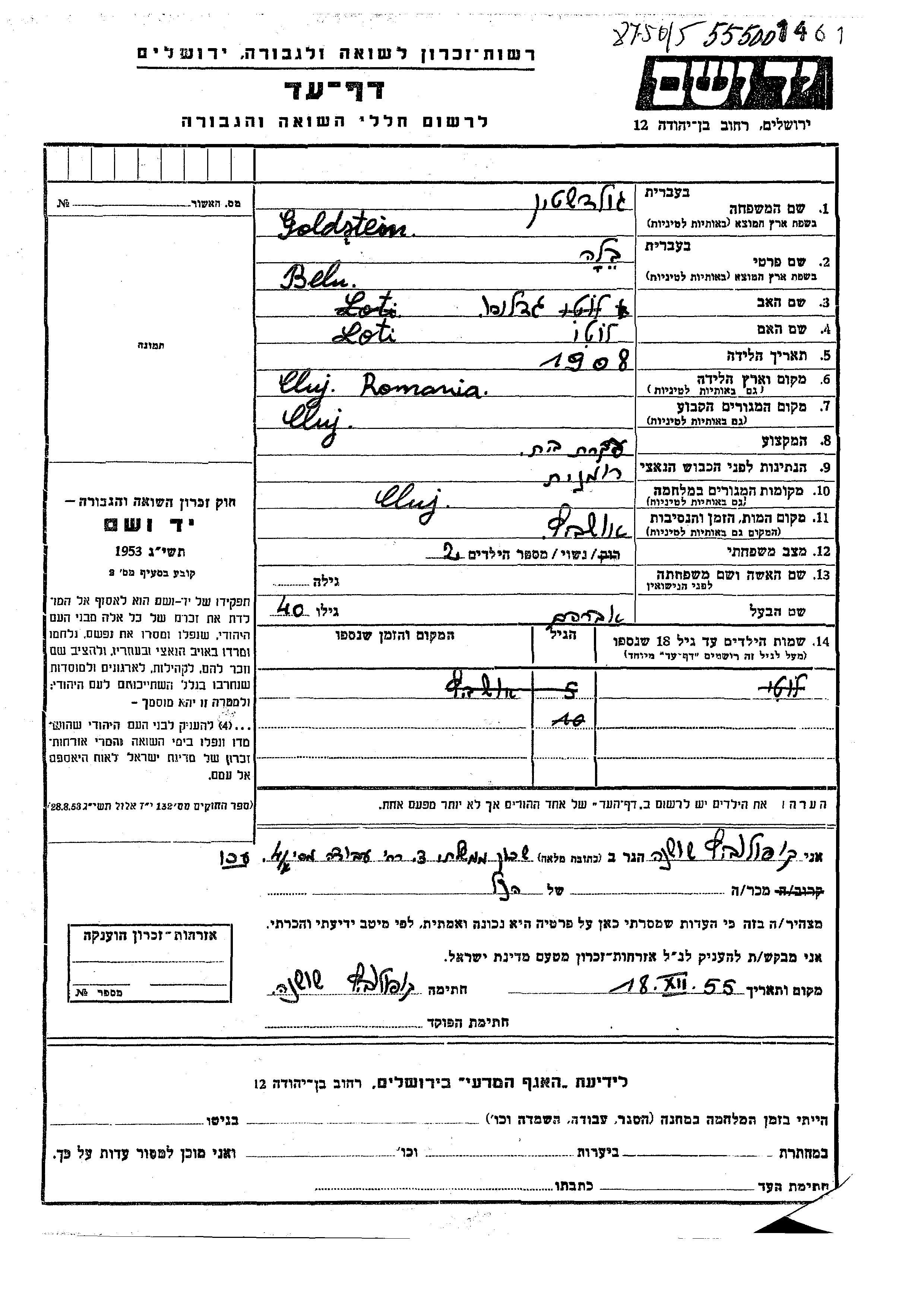 Goldstein Loti Cluj, Rumänien Gedenkblatt