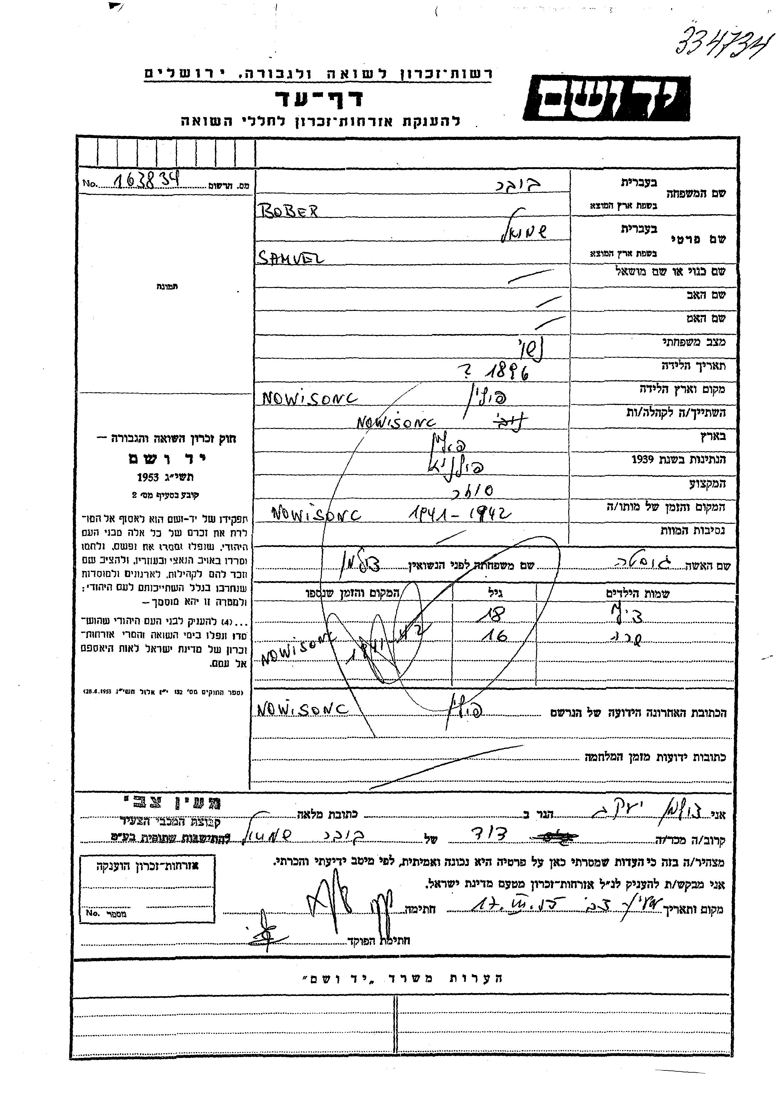 Bober Tzili Nowy Sacz, Polen Gedenkblatt