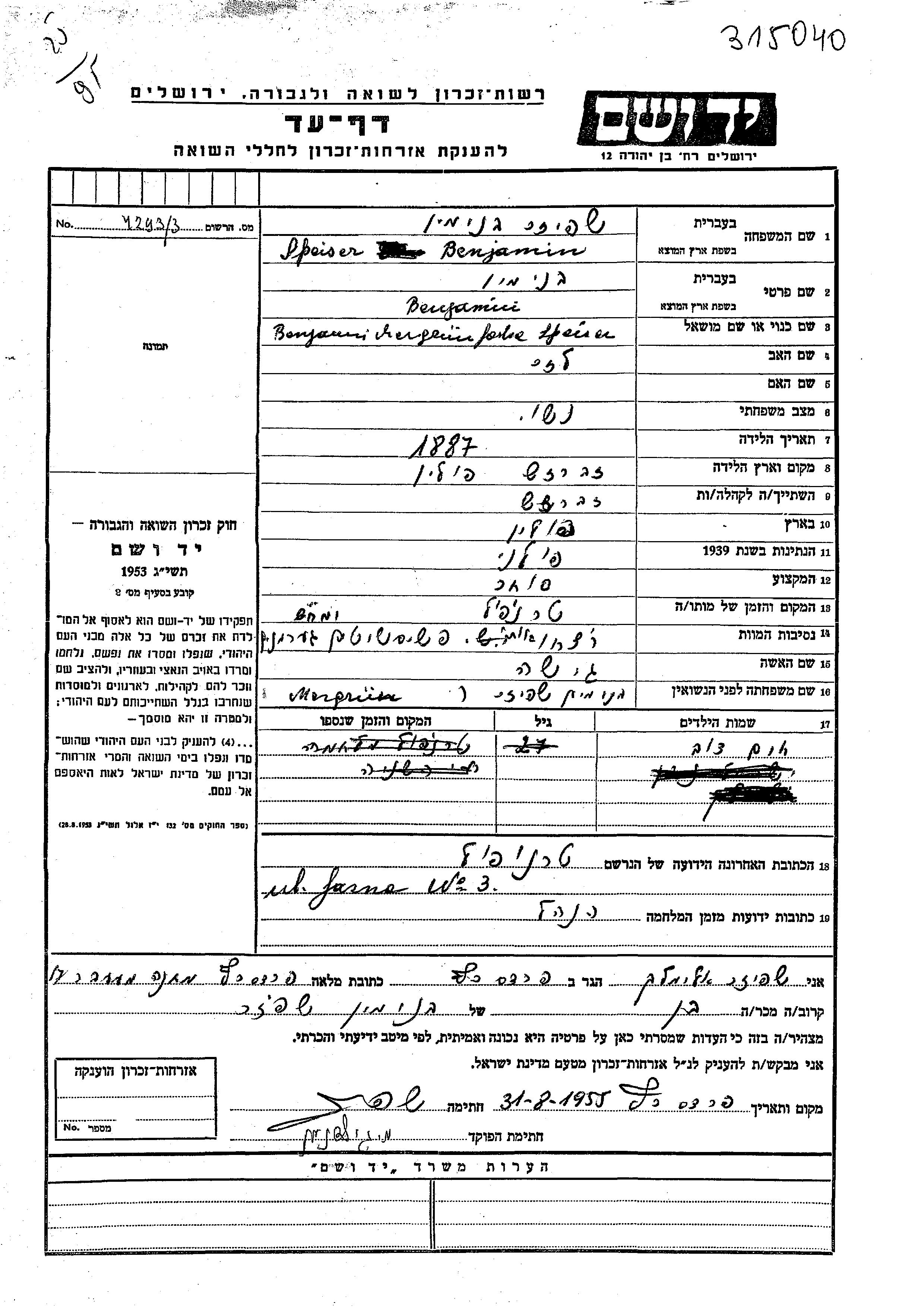 Khaim Dov wurde in der Schoah ermordet.