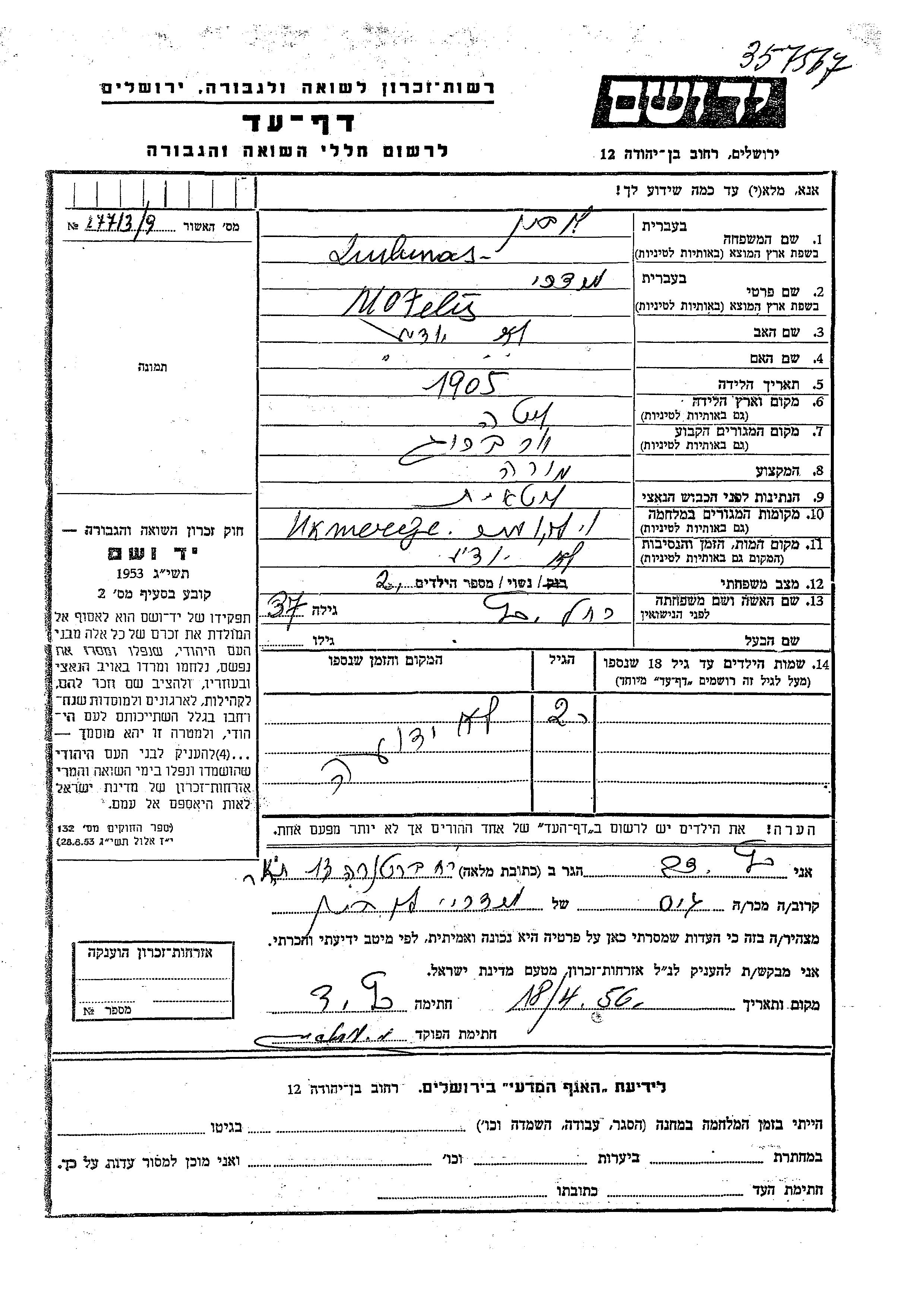 Vorname unbekannt Lubinas wurde Er/sie war der/ die Sohn/Tochter von Motelis und Rakhel, geb. Katz. Er/Sie war Kind. Vor dem Zweiten Weltkrieg er/sie in Jurborg, Litauen. Während des Krieges war er/sie in Ukmerge Vilkomir, Litauen.