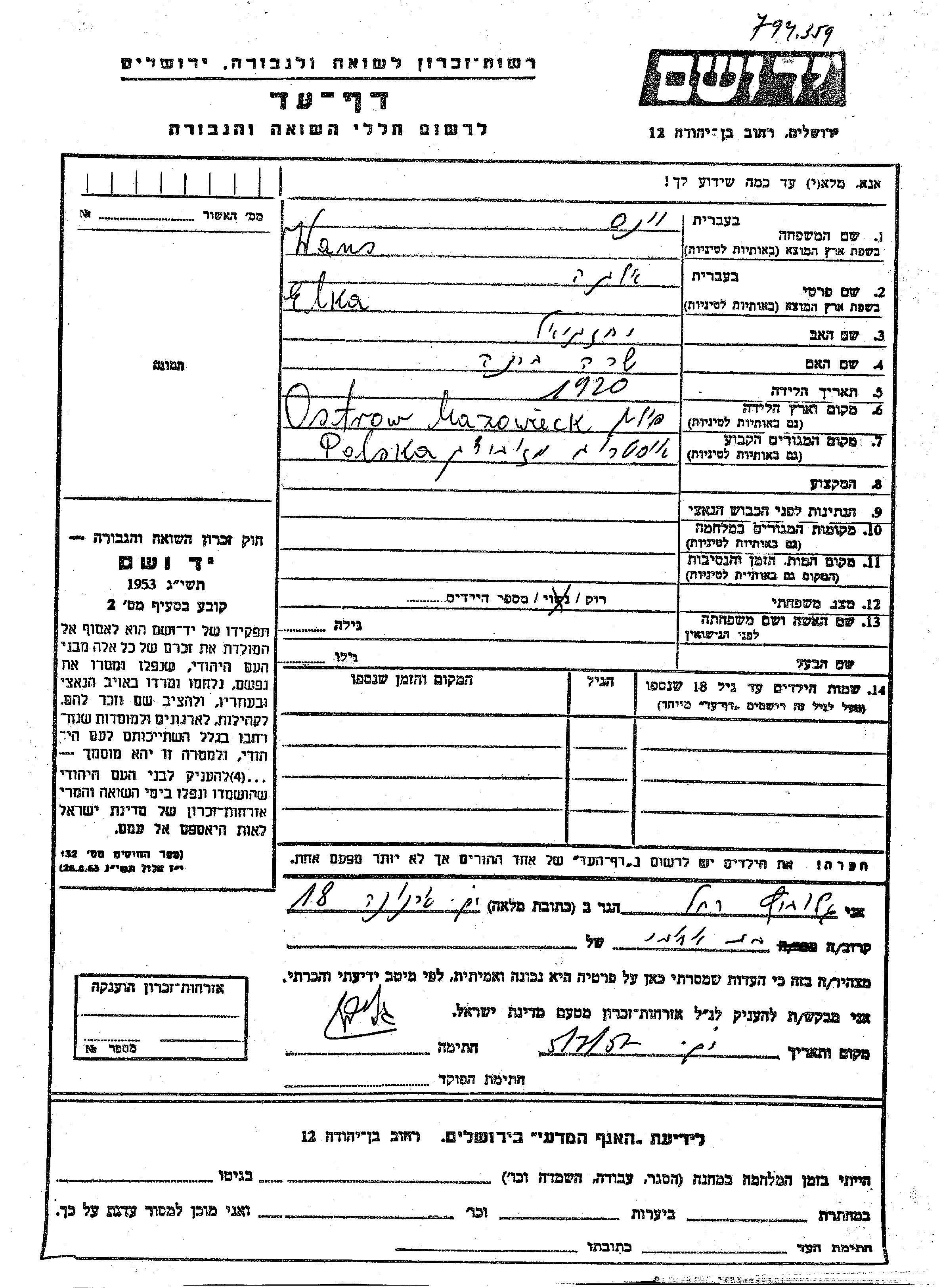 Elka Wans Vons wurde im Jahr 1920 in Ostrów Mazowiecka, Polen geboren. Sie war die Tochter von Yekhezkel und Sara Brakha. Sie war Ledig. Vor dem Zweiten Weltkrieg lebte sie in Ostrow, Polen.