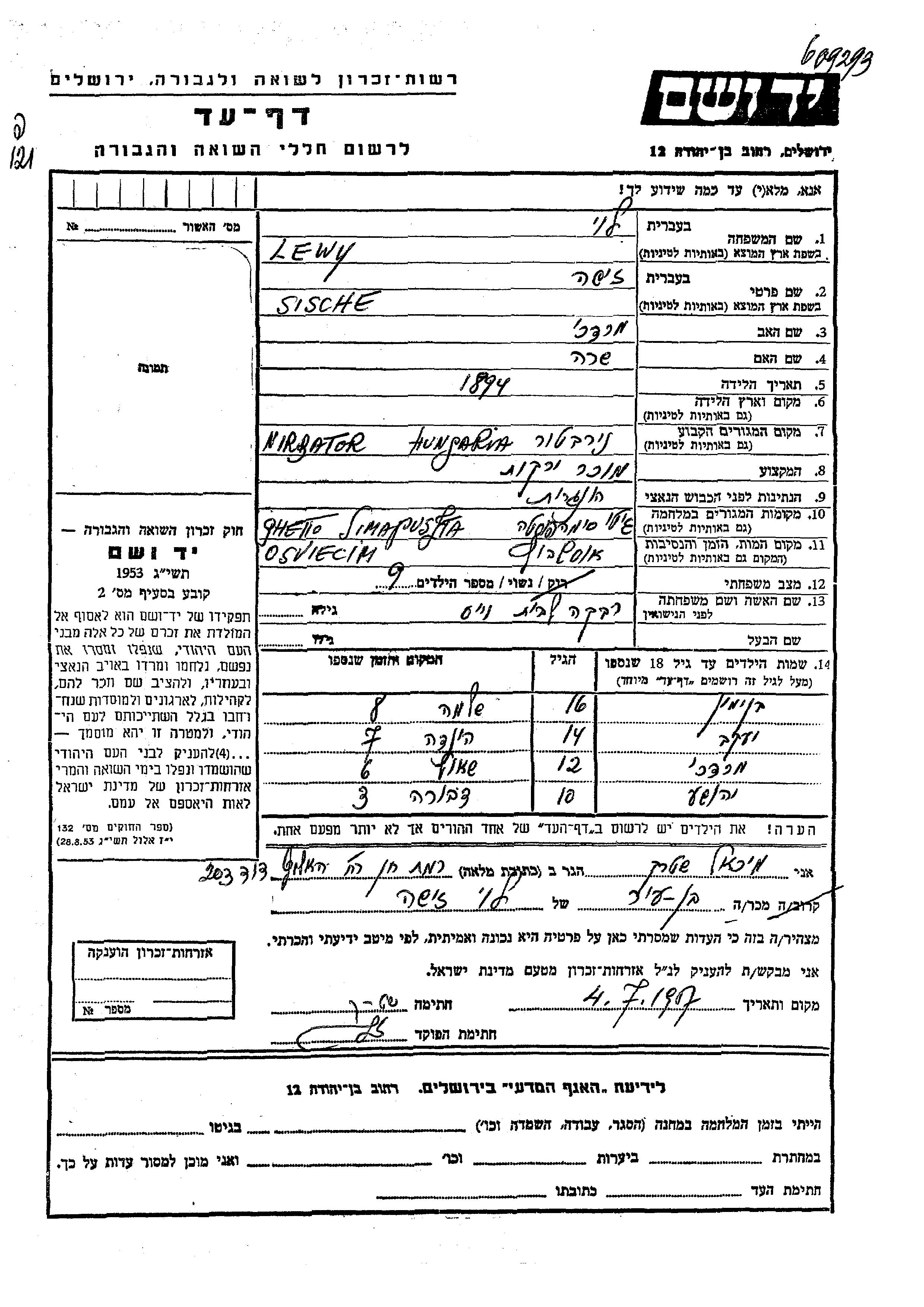 Yehoshua Levi wurde Er war der Sohn von Vorname unbekannt und Rivka, geb. Veis. Er war Kind. Vor dem Zweiten Weltkrieg lebte er in Nyirbator, Ungarn. Während des Krieges war er in Simapuszta, Ungarn.