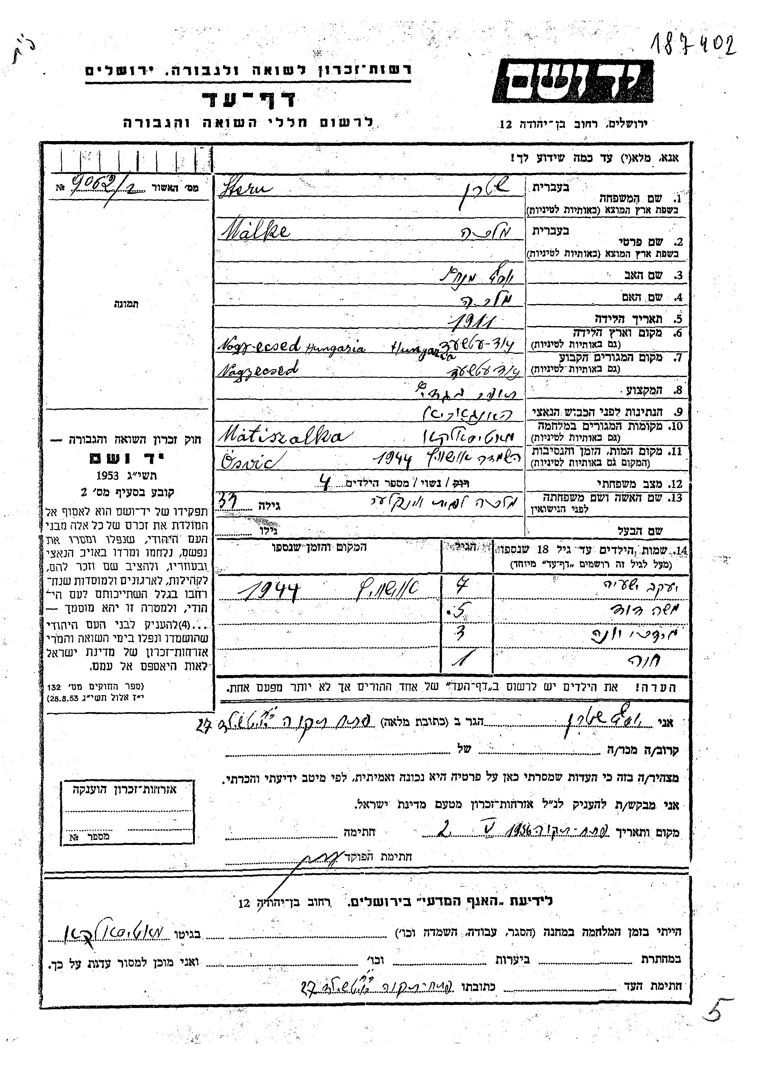 Yaakov Yeshiyah wurde in der Schoah ermordet.