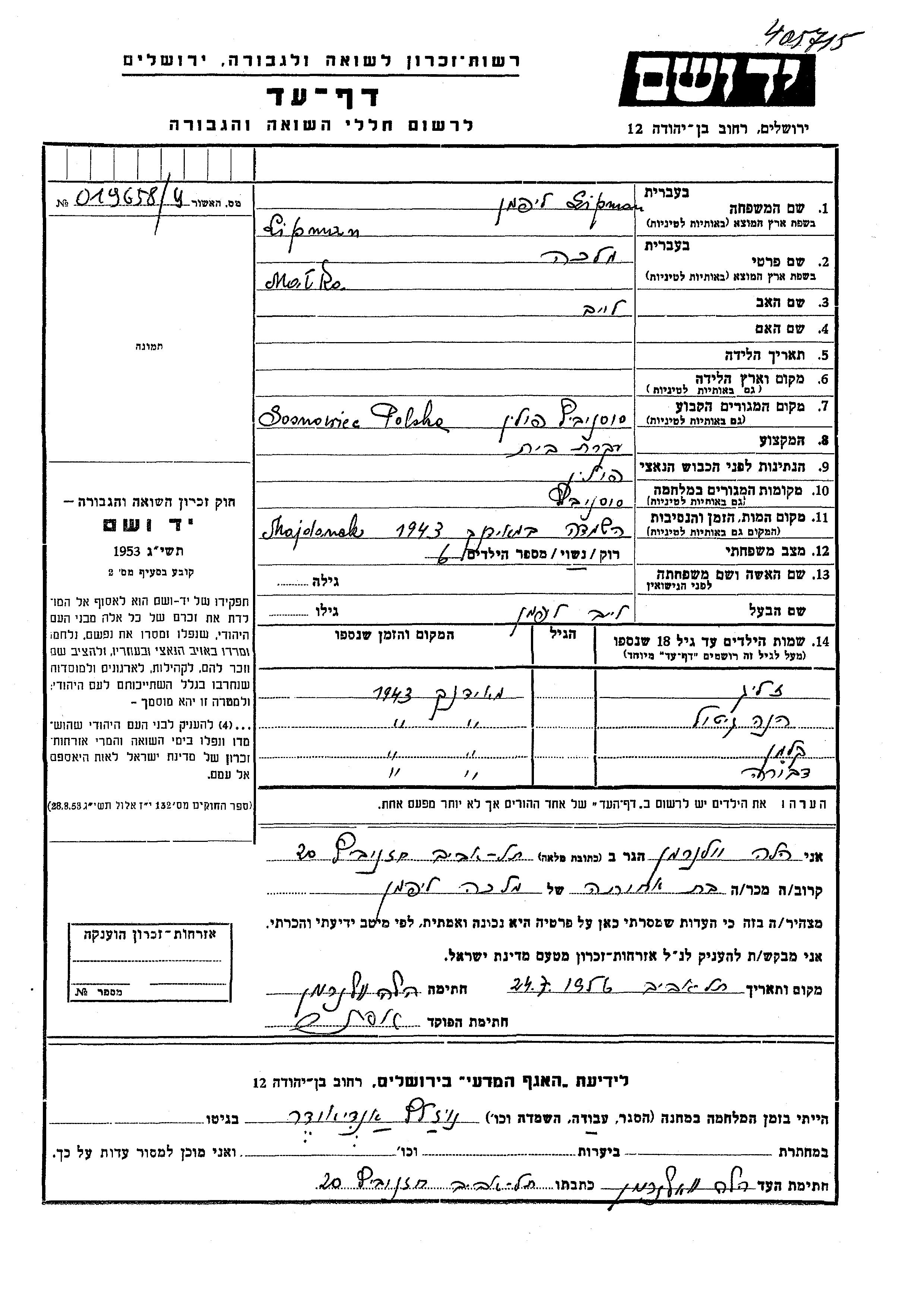 Kalman Lipman wurde Er war der Sohn von Leib und Malka. Er war Kind. Vor dem Zweiten Weltkrieg lebte er in Sosnovice, Polen. Während des Krieges war er in Sosnovice, Polen.