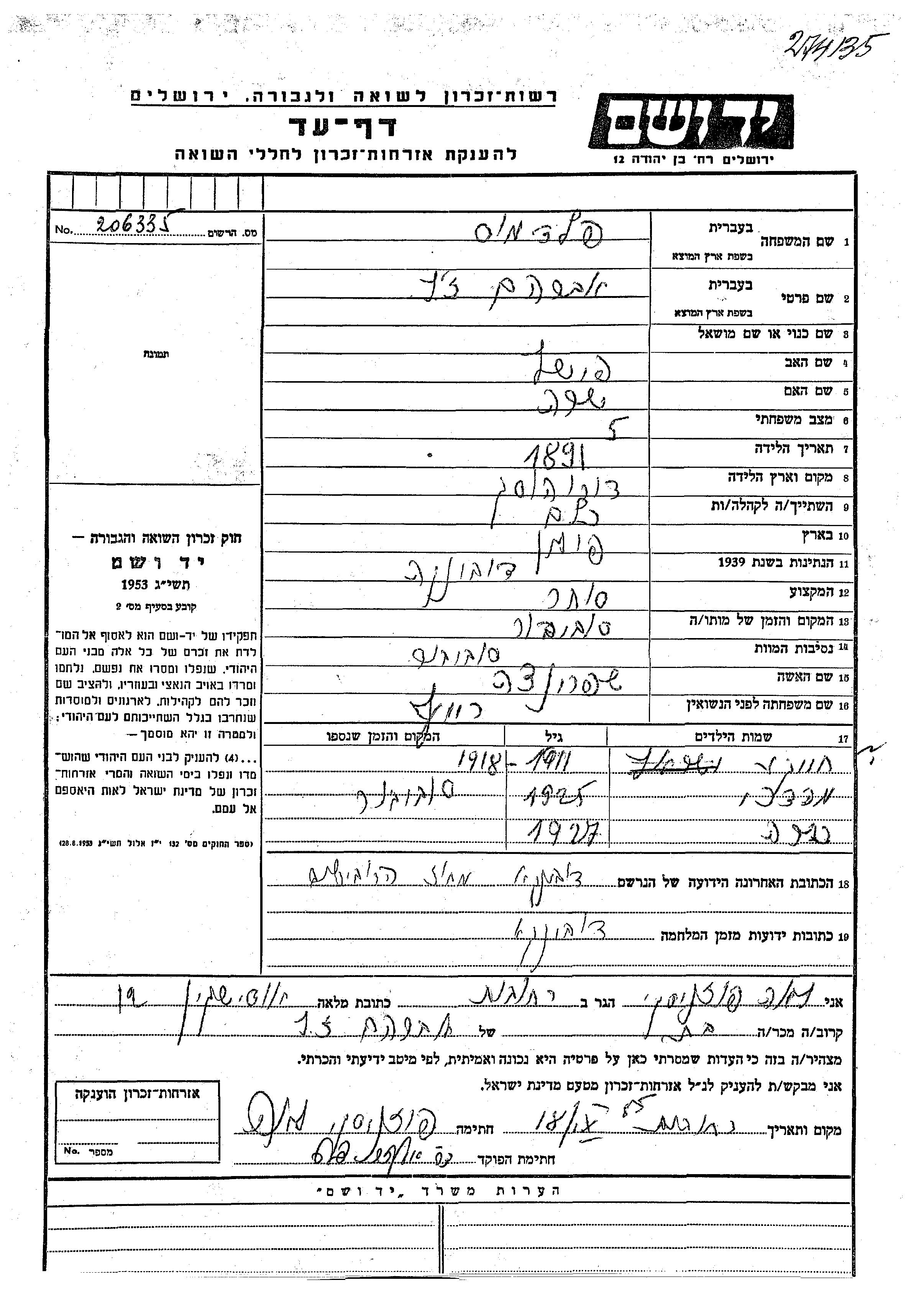Khaia Feldmus wurde im Jahr 1911 geboren. Sie war die Tochter von Avraham und Shprintza, geb. Reif. Vor dem Zweiten Weltkrieg lebte sie in Dubienka, Polen. Während des Krieges war sie in Dubienka, Polen.