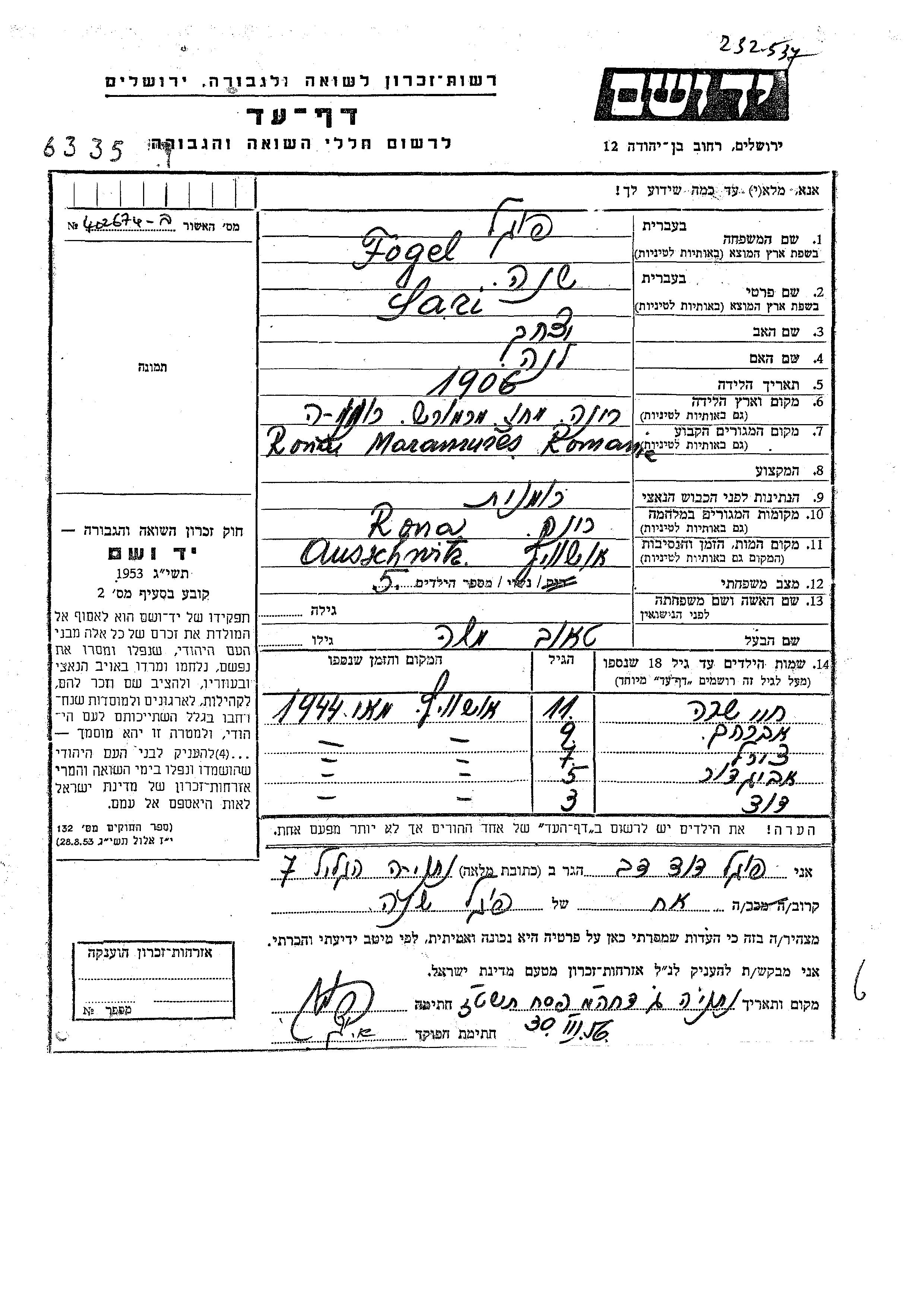 Tzirel wurde in der Schoah ermordet.