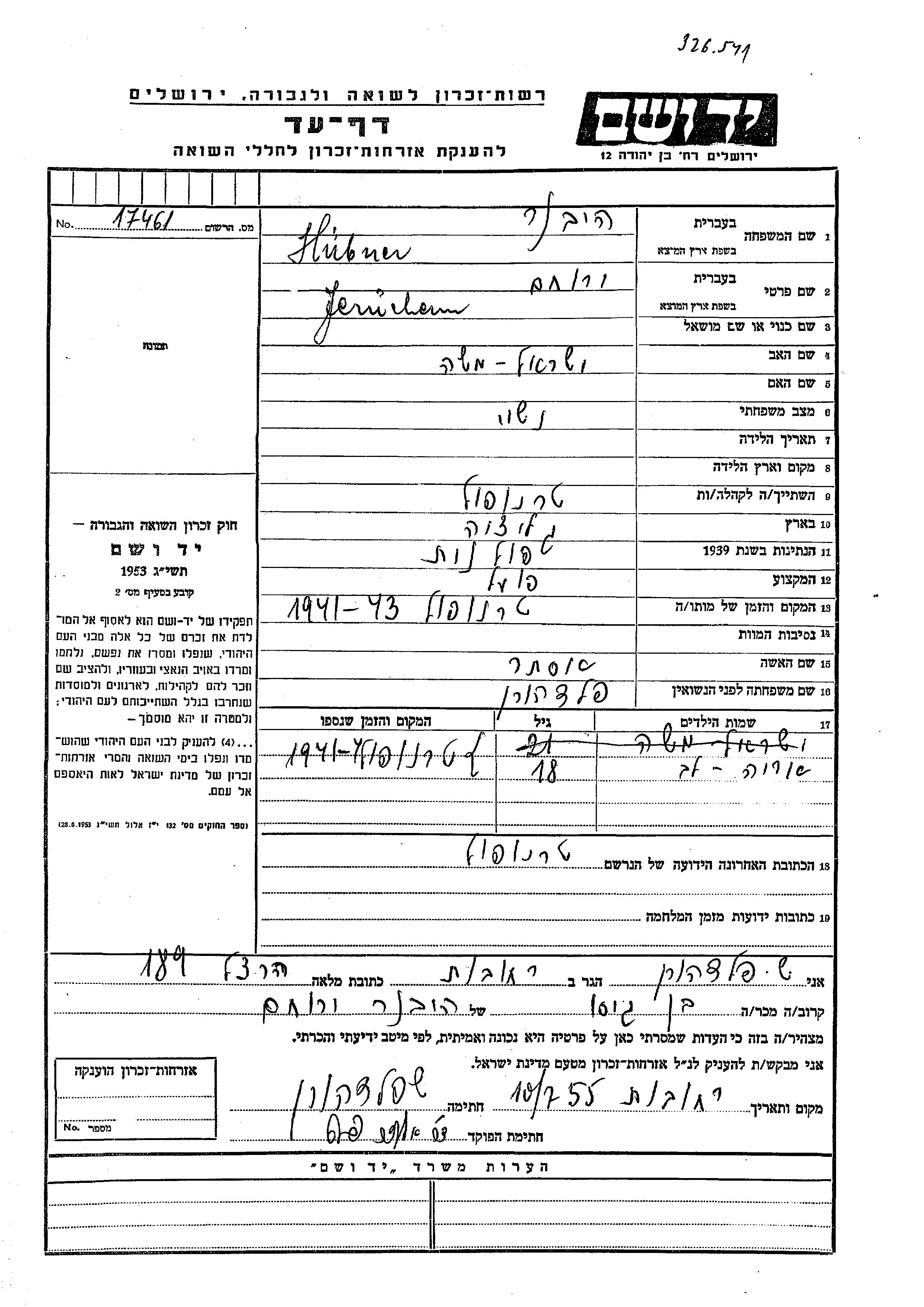 Hibner Arie Lev Tarnopol, Polen Gedenkblatt