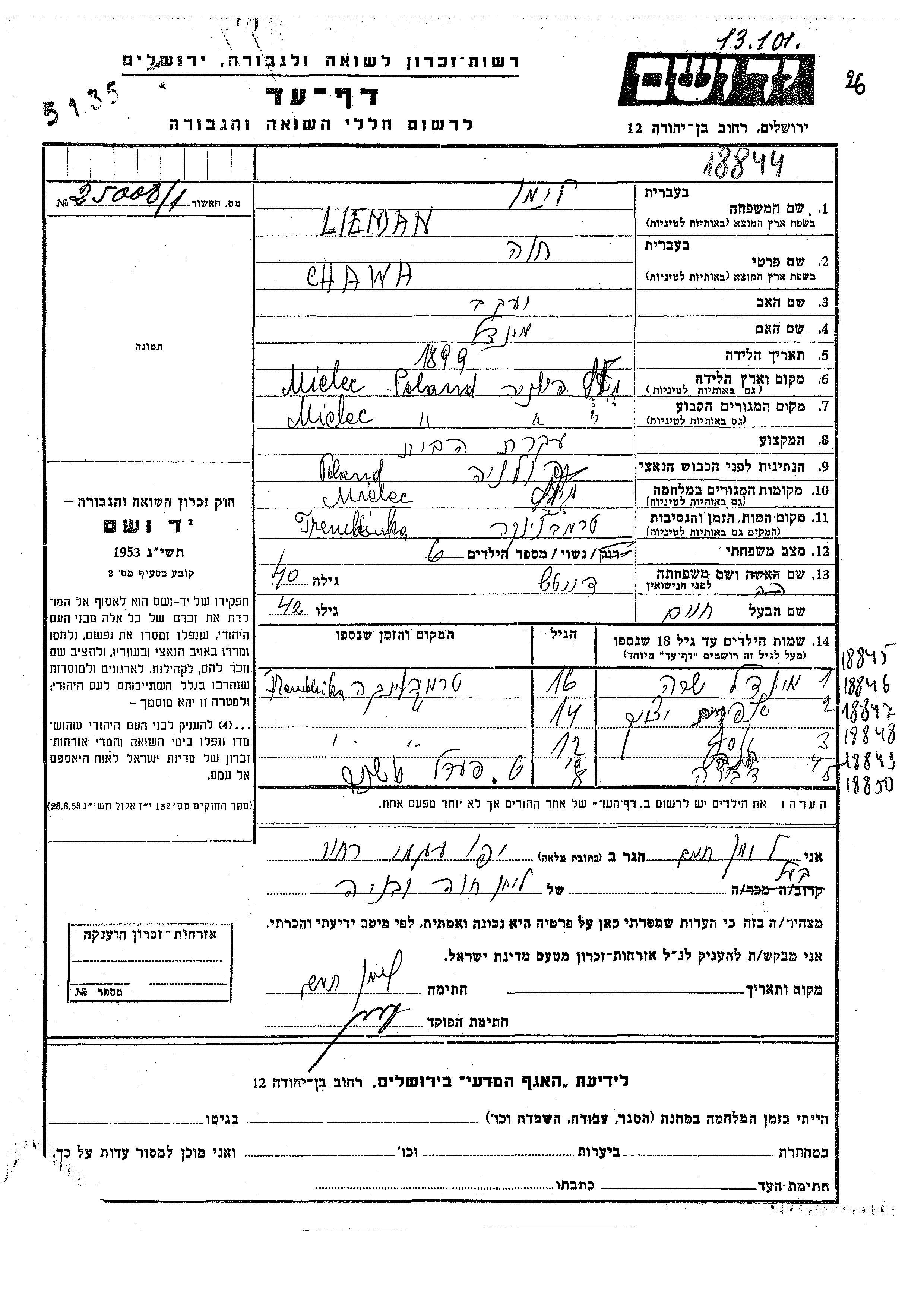 Lieman Mindl Sara Mielec, Polen Gedenkblatt