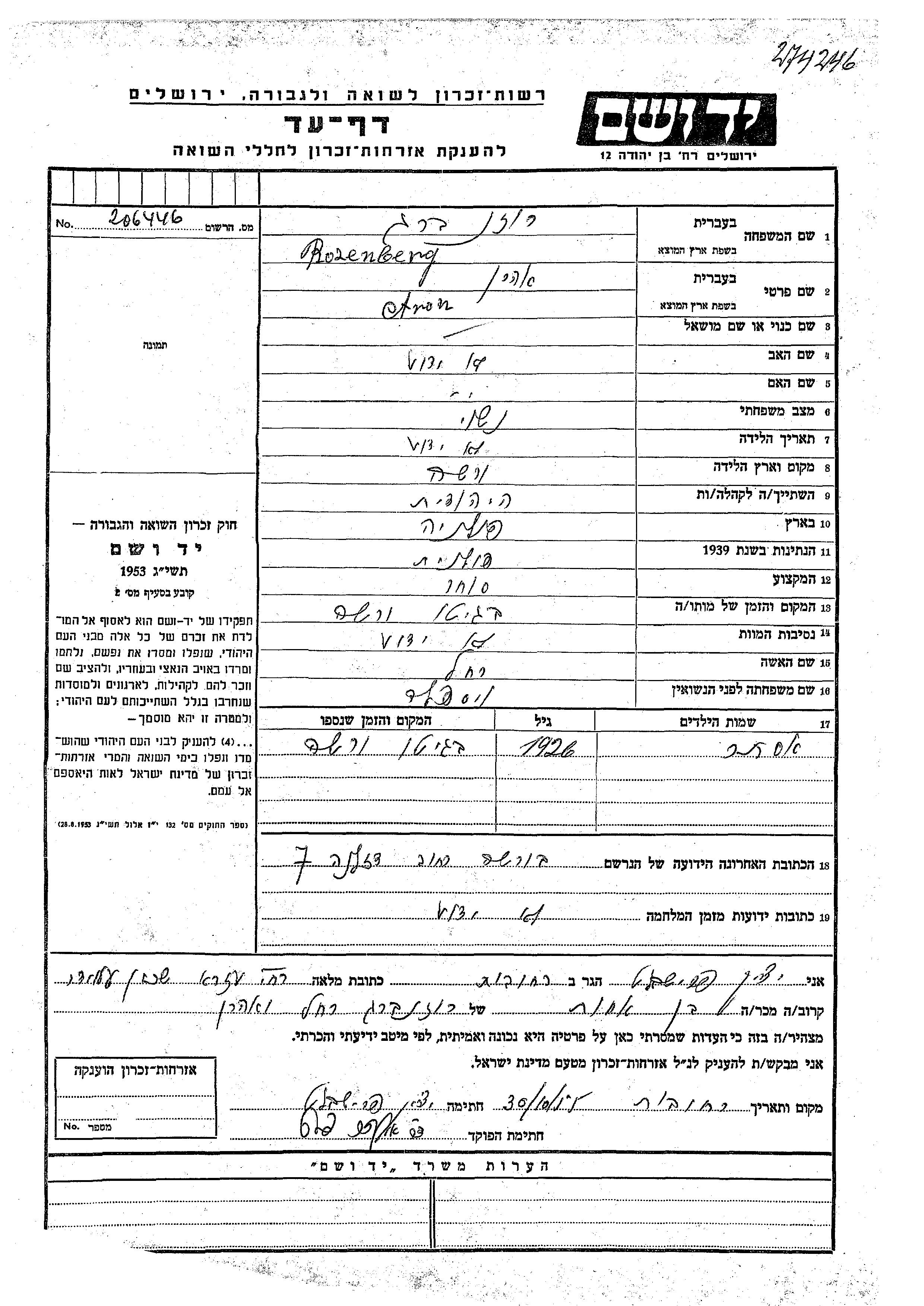 Ester Rozenberg wurde im Jahr 1926 geboren. Sie war die Tochter von Aron und Rakhel, geb. Veisfeld. Sie war Kind. Vor dem Zweiten Weltkrieg lebte sie in Polen. Während des Krieges war sie in Warszawa, Polen.
