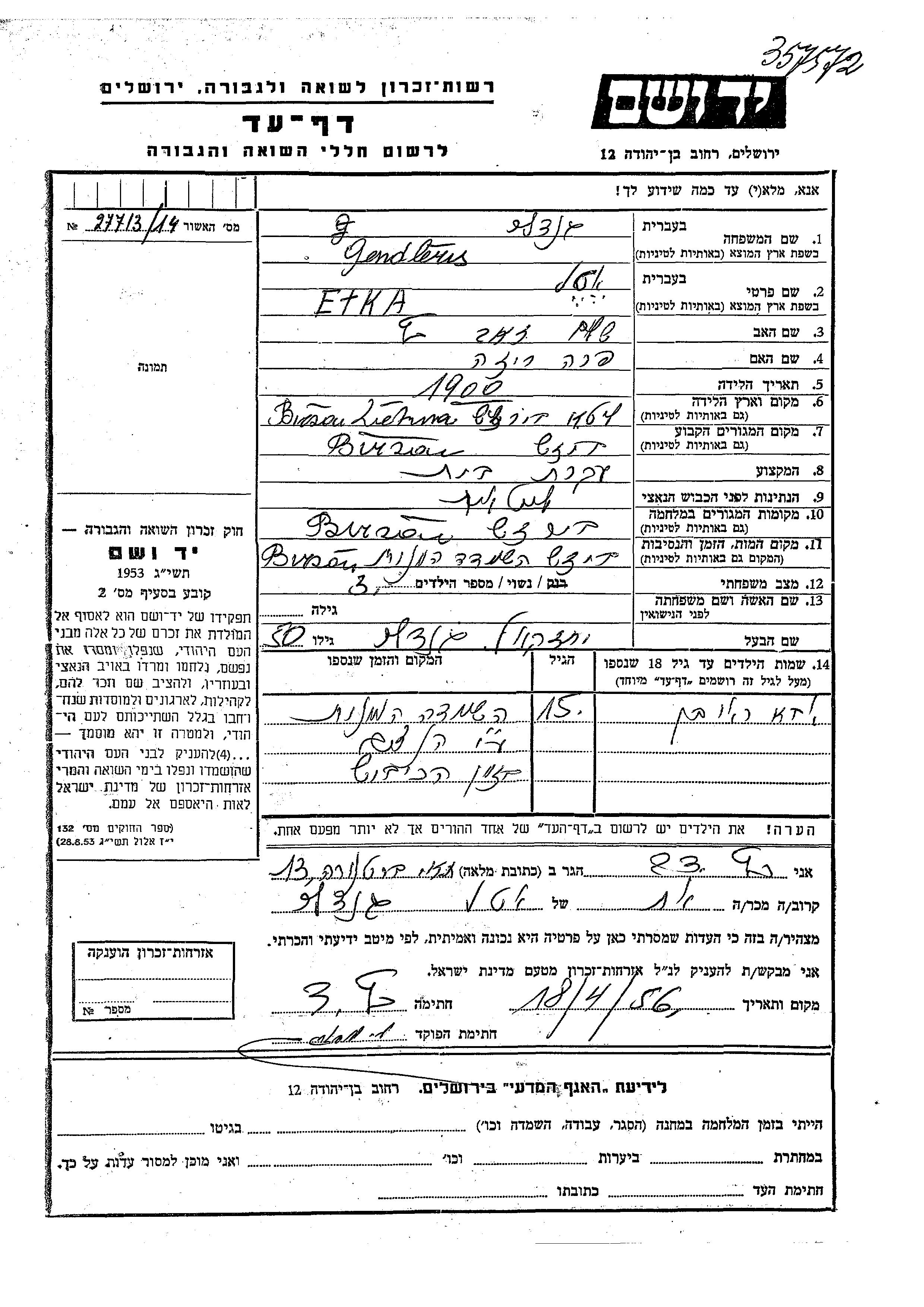 Aba Reuven Gendlerus wurde Er war der Sohn von Yekhezkel und Etka. Er war Kind. Vor dem Zweiten Weltkrieg lebte er in Birzai, Litauen. Während des Krieges war er in Birzai, Litauen.